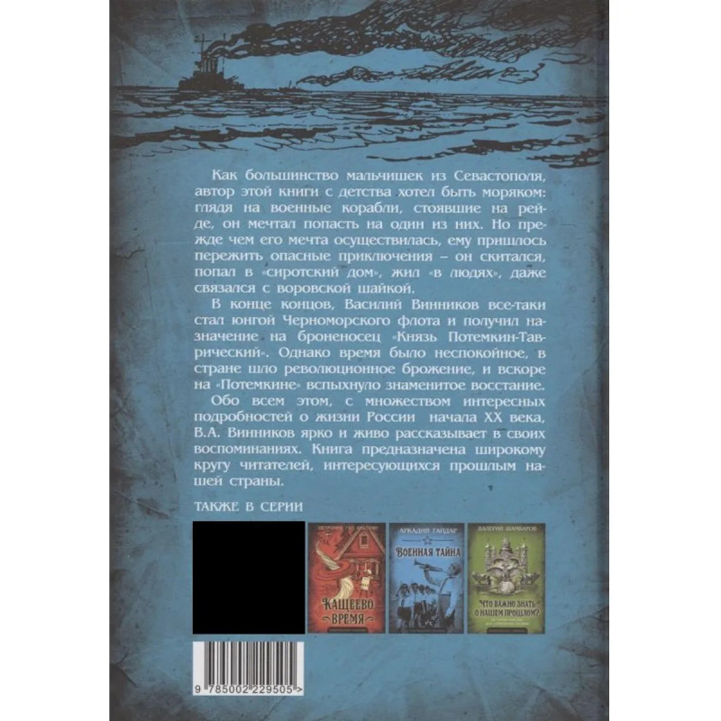 Как большинство мальчишек из Севастополя, автор этой книги с детства хотел быть моряком: глядя на военные корабли, стоявшие на рейде, он мечтал попасть на один из них. Но, прежде чем его мечта осуществилась, ему пришлось пережить опасные приключения – он скитался, попал в «сиротский дом», жил «в людях», даже связался с воровской шайкой. В конце концов, Василий Винников всё-таки стал юнгой Черноморского флота и получил назначение на броненосец «Князь Потёмкин-Таврический». Однако время было неспокойное, в стране шло революционное брожение, и вскоре на «Потёмкине» вспыхнуло знаменитое восстание. Обо всём этом, с множеством интересных подробностей в жизни России начала XX века, В.А. Винников ярко и живо рассказывает в своих воспоминаниях. Книга предназначена широкому кругу читателей, интересующихся прошлым нашей страны.