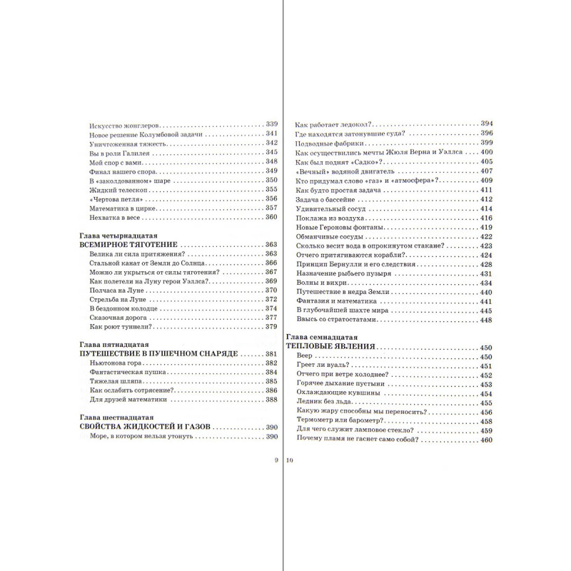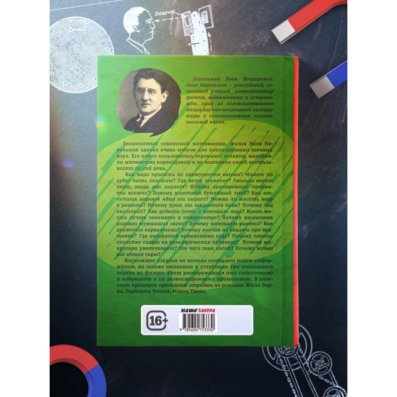 Знаменитый советский математик, физик Яков Перельман сделал очень многое для популяризации точных наук. Его книги пользовались огромным успехом, выдержали множество переизданий и не потеряли своей актуальности по сей день. Как надо прыгать из движущегося вагона? Может ли арбуз быть опасным? Где вещи тяжелее? Сколько весит тело, когда оно падает? Почему заостренные предметы колючи? Почему взлетает бумажный змей? Как отличить вареное яйцо от сырого? Можно ли носить воду в решете? Почему дует от закрытого окна? Почему лед скользкий? Как добыть огонь с помощью льда? Какие места лучше занимать в кинотеатре? Почему насекомые издают жужжащие звуки? Почему взлетает ракета? Как движется каракатица? Почему волчок не падает при вращении? Где находятся затонувшие суда? Почему птицы спокойно сидят на электрических проводах? Почему микроскоп увеличивает? От чего заяц косой?