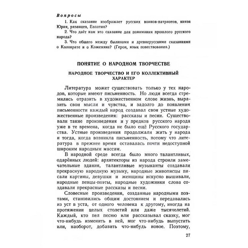 Характеристики Родная литература. Хрестоматия для 6 кл. 1954 год.