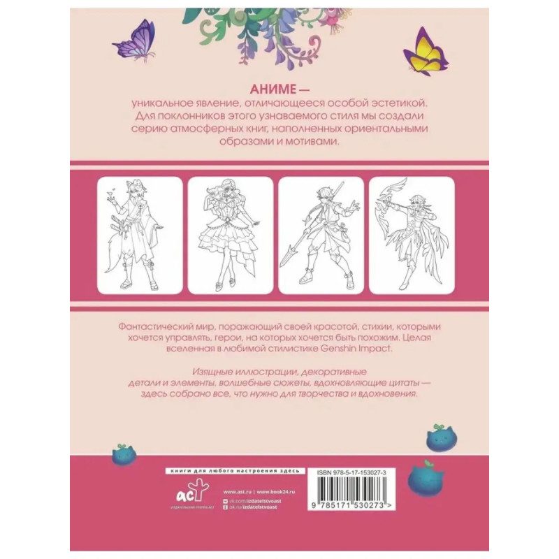 ISBN 9785-17153-0273. Anime Art. Вселенная в стиле Genshin Impact. Книга для творчества по мотивам популярной игры. Anime Art. Вселенная в стиле Genshin Impact. Книга для творчества по мотивам популярной игры. Аниме уникальное явление, отличающееся особой эстетикой. Для поклонников этого узнаваемого стиля мы создали серию атмосферных книг, наполненных ориентальными образами и мотивами. Самые красивые герои, словно вышедшие из мира Тейват. Семь стихий, невероятные локации и, конечно, потрясающие наряды в любимой стилистике Genshin Impact. Изящные иллюстрации, декоративные детали и элементы, волшебные сюжеты, вдохновляющие цитаты здесь собрано все, что нужно для творчества и вдохновения.