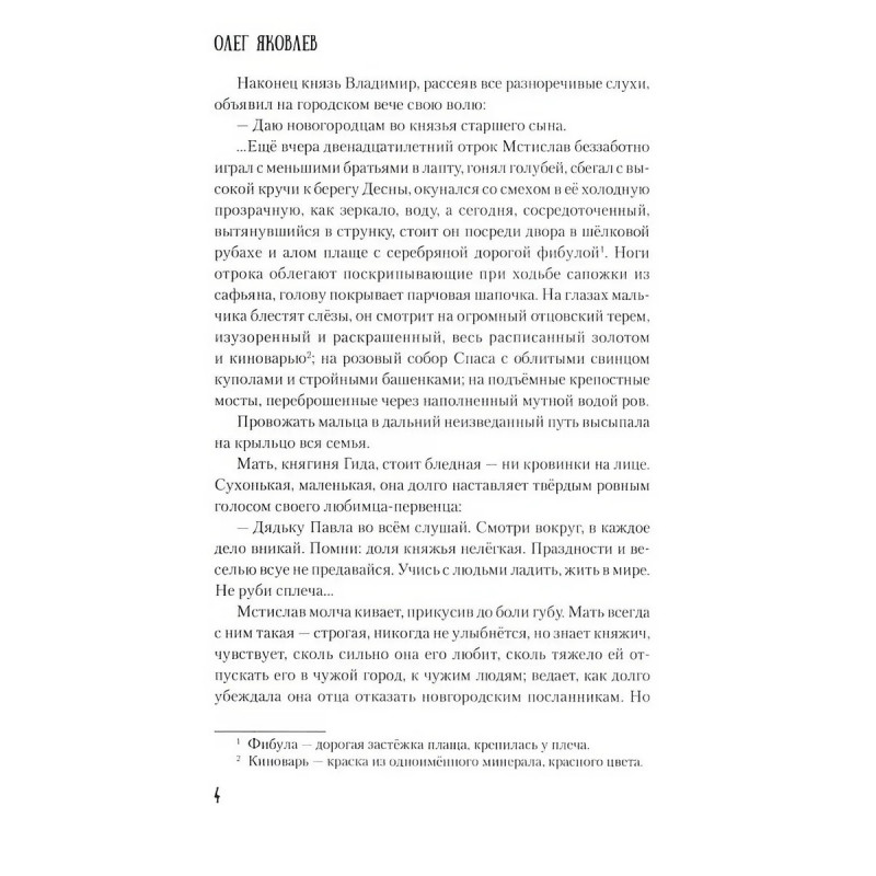 Мстислав, сын Мономаха. Яковлев О. И. Начало XII века. Мстислав, старший сын князя Владимира Мономаха, с двенадцати лет княжит в Новгороде и потому оторван от семьи родителей, братьев, сестёр. Для новгородцев Мстислав тоже не стал своим, и потому его тяготит чувство одиночества. Даже повзрослев, он живёт как будто сам по себе, не чувствует себя Мономаховичем и потому лишь усмехается, когда отец читает ему своё Поучение. Лишь позднее сын Мономаха поймёт, что в Поучении сокрыт бесценный опыт! Мстиславу суждено пройти долгий и тернистый путь, чтобы в итоге набраться мудрости и стать продолжателем отцовского дела по собиранию Руси в единый кулак.