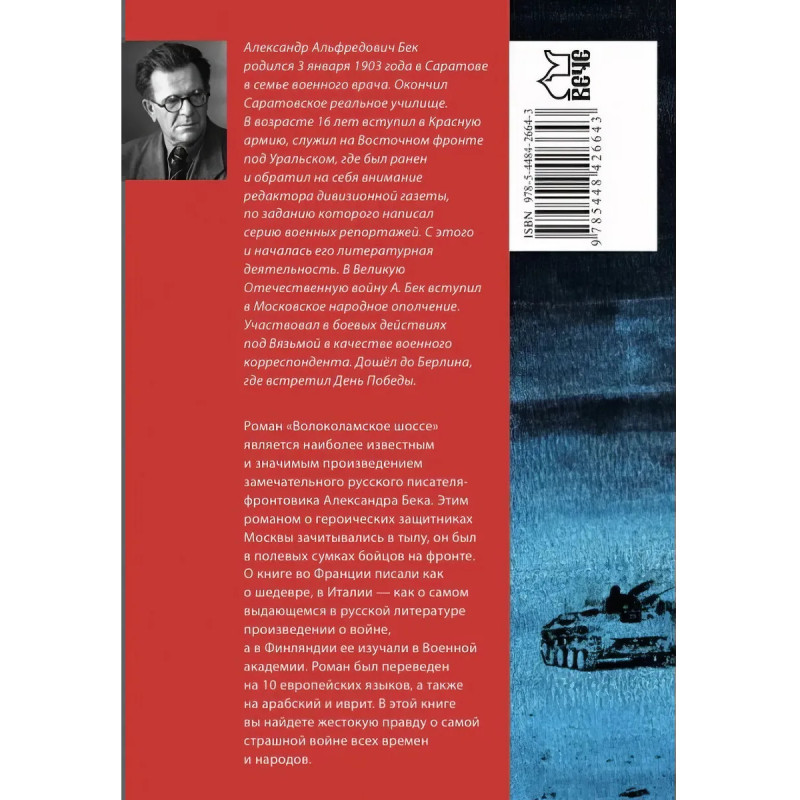 Роман "Волоколамское шоссе" является наиболее известным и значимым произведением замечательного русского писателя-фронтовика Александра Бека. Этим романом о героических защитниках Москвы зачитывались в тылу, он был в полевых сумках бойцов на фронте. О книге во Франции писали как о шедевре, в Италии как о самом выдающемся в русской литературе произведении о войне, а в Финляндии ее изучали в Военной академии. Роман был переведен на 10 европейских языков, а также на арабский и иврит. В этой книге вы найдете жестокую правду о самой страшной войне всех времен и народов.