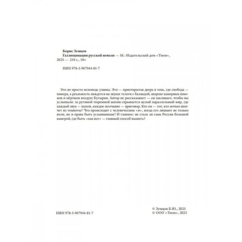 Это не просто исповедь узника. Это - приоткрытая дверь в тень, где свобода - химера, а реальность зиждется в звуках телеги с баландой, шорохе камерных шмонов и мёртвом воздухе Бутырки. Автор не рассказывает - он заклинает, чтобы вы услышали: за рутиной тюремной жизни скрывается целый параллельный мир, где каждый звук - вызов, каждое молчание - приговор. Кто он - тот, кто ночью шепчет из темноты? Что происходит с человеческим "я", когда его лишают не только воли, но и права быть услышанным? И главное: не стала ли сама Россия большой камерой, где быть "как все" - главный способ выжить?