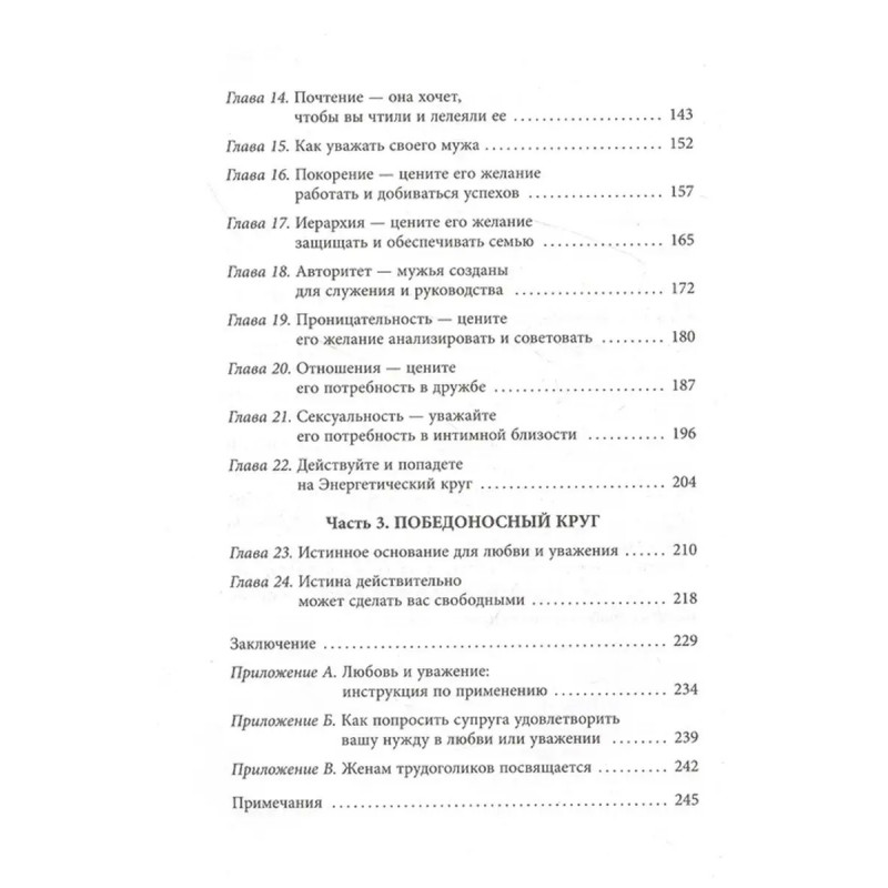 "Любовь и уважение. Как научиться понимать свою вторую половину и обрести гармонию в отношениях." ISBN 9785041619541. В чем секрет гармоничных отношений в браке? Основываясь на поведении тысячи пар и тридцатилетних исследованиях, доктор Эмерсон Эггерих вывел простую формулу счастливой семьи. Главное стремление женщины - быть любимой, а мужчины - чувствовать уважение к себе. Научившись уважать потребности друг друга, мы сможем избавиться от взаимных претензий и обид и научиться настоящей близости.