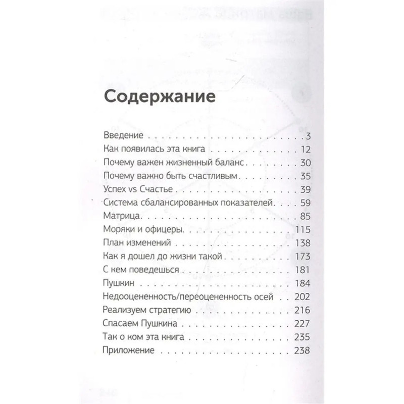 ISBN 9785171447861. Многие уверены, что успех это материальное благополучие и на пути к нему нужно обязательно чем-то жертвовать. Большинство из нас посвящают гораздо больше времени планированию своего бизнеса или карьеры, чем планированию собственной жизни. В итоге мы часто видим успешных, но на самом деле сильно уставших и не очень счастливых людей. Поэтому настоящее решение научиться полноценно жить не вместо бизнеса, а вместе с успешным бизнесом. Полноценная жизнь включает в себя удовлетворение всех основных потребностей человека. Это любовь, дружба, благосостояние, работа, здоровье и хобби.