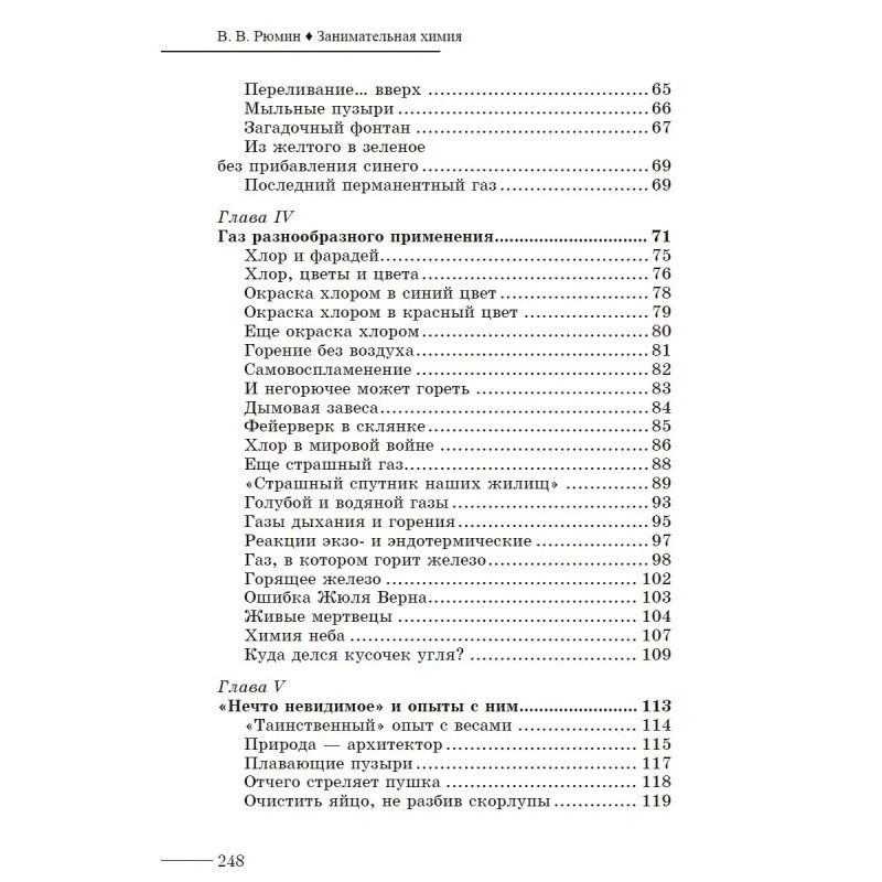 Химия - наука удивительная! Она научила человечество познавать состав небесных тел и даже определять их возраст, позволила бороться со многими болезнями, она является основой и существом многочисленных производственных процессов. Химия окружает нас круглосуточно, не существует отрасли человеческой жизни, которая не имела бы прямой или косвенной связи с ней. Кто был самым первым химиком на земле? Из чего состоят "три кита химии"? Как воду можно превратить в чернила и обратно? В чём состоит секрет старых красильщиков? Что может быть слаще сахара? В чем ошибся Жюль Верн? Как можно очистить яйцо, не разбивая скорлупы? Кто изобрел порох? Как цветы предсказывают погоду? Настоящее издание в доступной и увлекательной форме знакомит со всеми основными химическими явлениями и процессами.
