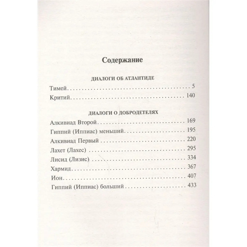 ISBN 9785171462581. Что мы знаем об Атлантиде? И откуда вообще мы о ней узнали? Откуда возникла эта легенда и кто впервые рассказал о могущественном островном государстве, описал его особенности и попытку завоевать древнее государство афинян? Диалоги великого философа Платона "Тимей" и "Критий" - это единственный литературный источник, подробно рассказывающий нам об этом острове, где располагалось "удивительное по величине и могуществу царство" атлантов, погрязших в роскоши, алчности и гордыне и за это ввергнутых богами в морскую пучину. В состав предлагаемого сборника входят также диалоги, затрагивающие тему человеческих добродетелей.