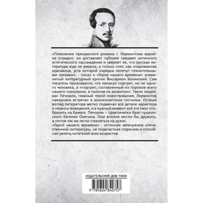 Герой нашего времени. "Появление прекрасного романа г. Лермонтова вдвойне отрадно: он доставляет публике предмет истинного эстетического наслаждения и уверяет ее, что русская литература еще не умерла, а только спит, как очарованная красавица, уста которой изредка лепечут пленительными грезами", - писал о "Герое нашего времени" знаменитый литературный критик Виссарион Белинский. Сам писатель признавался, что написал портрет, но не одного человека, а "портрет, составленный из пороков всего нашего поколения, в полном их развитии". Таких людей, как Печорин, главный герой повествования, Лермонтов наверняка встречал в великосветских гостиных. Острый взгляд литератора метко подмечал все детали характера и нюансы поведения, и в нужный момент всё это смог отобразить на бумаге. Печорин практически брат пушкинского Евгения Онегина. Они вполне могли бы дружить, а потом так же легко стреляться на дуэли. "Герой нашего времени" - истинная жемчужина отечественной литературы, не подвластная старению и способная увлечь читателей всех возрастов.