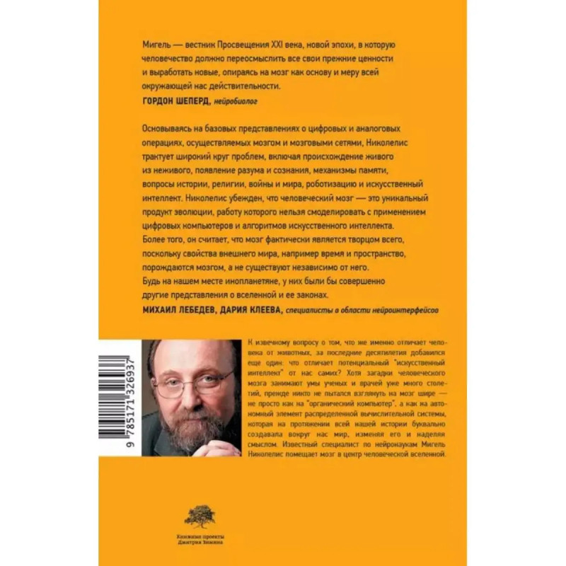 Истинный творец всего. К извечному вопросу о том, что же именно отличает человека от животных, за последние десятилетия добавился еще один: что отличает потенциальный искусственный интеллект от нас самих? Хотя загадки человеческого мозга занимают умы ученых и врачей уже много столетий, прежде никто не пытался взглянуть на мозг шире не просто как на органический компьютер, а как на автономный элемент распределенной вычислительной системы, которая на протяжении всей нашей истории буквально создавала вокруг нас мир, изменяя его и наделяя смыслом. Известный специалист по нейронаукам Мигель Николелис помещает мозг в центр человеческой вселенной.