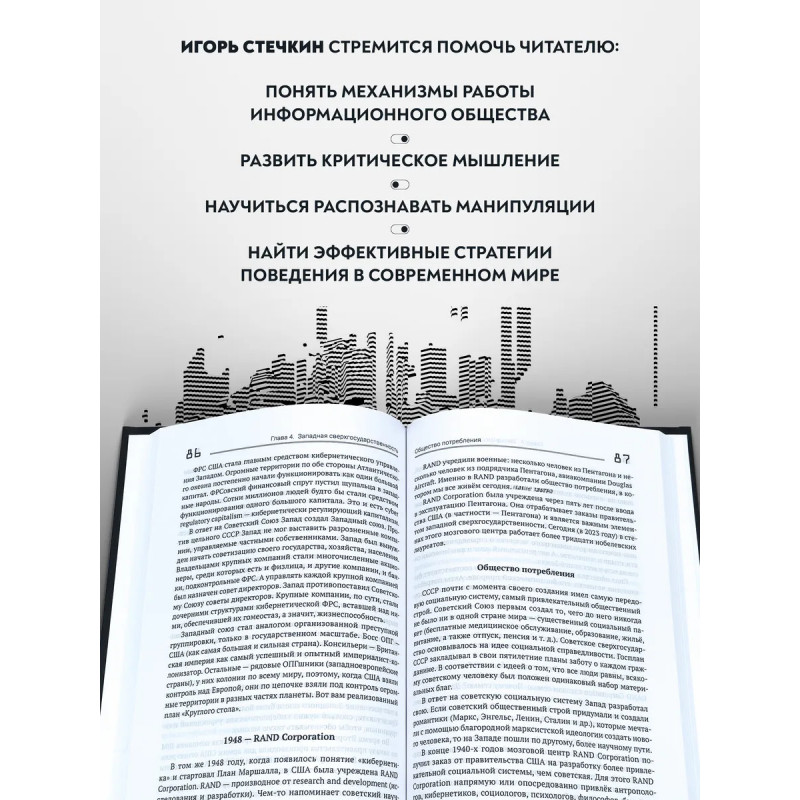 Информационное общество. Игорь Стечкин. А знаете ли вы, что такое информационное общество? По каким законам оно живёт? Каким образом человек функционирует в таком обществе? Какие стратегии выживания наиболее эффективны в современном мире? Нужна ли идеология сегодняшнему человеку?Это лишь некоторые вопросы, над которыми размышляет И. Стечкин в своей новой книге.Всесторонний анализ современного общества, большое количество наглядных примеров и интересных параллелей, обращение к событиям прошлого для прогнозирования будущего вот отличительные черты стиля автора. Читатель вспомнит основные принципы построения общества в разное время у разных народов, узнает, как проводят информационную обработку граждан и каким образом этому можно противостоять, и даже, возможно, найдёт ответ на вопрос о том, является ли наша страна сверхгосударством.