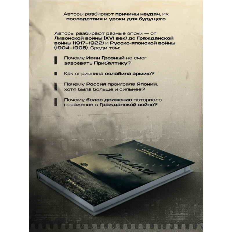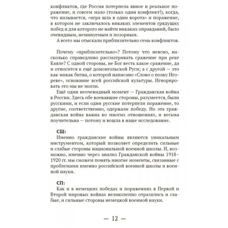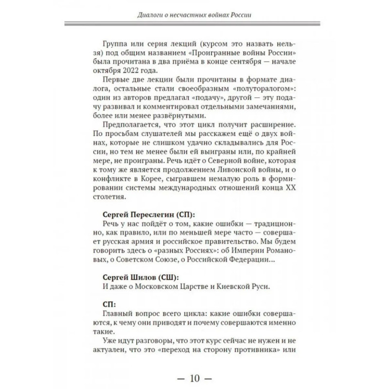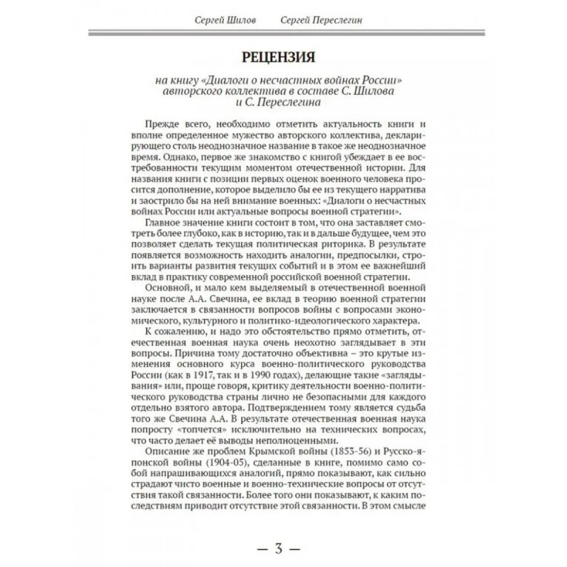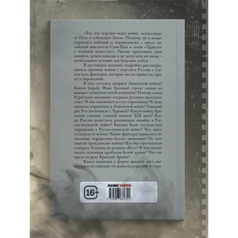 Диалоги о "несчастных войнах России". Переслегин С.Б., Шилов С.Ю. "Тот, кто хорошо ведёт войну, осуществляет Путь и соблюдает Закон. Поэтому он и может управлять победой и поражением" писал китайский мыслитель Сунь-Цзы в своём "Трактате о военном искусстве". Умение признавать свои ошибки, делать выводы и не допускать их вновь необходимое условие для будущих побед. В настоящем издании подробно рассматриваются крупные войны с участием России с учётом всех факторов, которые могли привести страну к поражению.В чём состояла интрига Ливонской войны? Какую борьбу Иван Грозный считал одним из важных элементов своей политики? Почему князя Курбского называют "первым русским диссидентом"? В чём заключается суть опричнины? К чему привело поражение в Ливонской войне? Сколько раз Россия воевала с Турцией? Какую войну британцы считают главной войной XIX века? Когда Россия допустила решающую ошибку в Русско-японской войне? Каковы были последствия поражения в Русско-японской войне? Что такое усталость от войны? Какие факторы привели к тотальному поражению белого движения? От чего зависят гражданские войны? Кто был прототипом генерала Хлудова из романа "Бег"? В чём заключалась основная проблема белой армии? Что сыграло на руку Красной Армии? Книга написана в форме диалога двух экспертов и это придаёт ей живость реальной беседы.