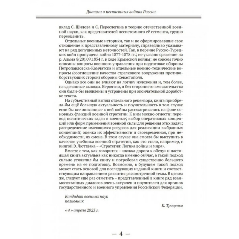 Характеристики Диалоги о "несчастных войнах России".