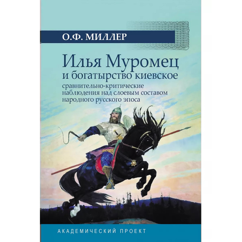 Илья Муромец и богатырство киевское: сравнительно-критические наблюдения над слоевым составом народного русского эпоса. Миллер О. Ф. Настоящее издание является первой современной публикацией труда, ставшего своего рода magnum opus видного представителя славянофильства, единственного славянофила немецкого происхождения Ореста Федоровича Миллера, всю свою жизнь посвятившего изучению русской литературы и письменности. Редакторы настоящего издания максимально бережно подошли к работе с текстом докторской диссертации О. Миллера, одновременно сохраняя авторский стиль повествования и адаптируя текст для современного читателя. В издании предпринимается попытка рассмотреть О. Миллера не только в качестве фольклориста, но также уникального ученого, предвосхитившего компаративистские, литературоведческие и даже религиоведческие тренды, которыми будут увлекаться исследователи славянского фольклора и эпоса в XX в. Учитывая новаторский характер и масштаб проделанной О. Миллером работы, настоящее издание его рукописи представляет большой интерес не только для специалистов, интересующихся проблематикой славянского былинного эпоса, но и для широкого круга читателей, интересующихся историей литературы, фольклористикой и мировой мифологией.