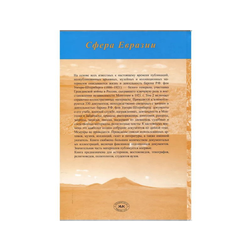 На основе всех известных к настоящему времени публикаций, неопубликованных архивных, музейных и коллекционных материалов описываются жизнь и деятельность барона Р. Ф. фон Унгерн-Штернберга (18861921) белого генерала, участника Гражданской войны в России, сыгравшего ключевую роль в восстановлении независимости Монголии в 1921 г. В томе 1 анализируются генеалогические данные о роде Унгерн-Штернбергов, биография Р. Ф. Унгерна, его участие в Русско-японской, Первой мировой и Гражданской войнах, освобождение Внешней Монголии от китайской оккупации, восстановление ее независимости и положение там, в 1921 г., поход Азиатской конной дивизии на Сибирь и действия других контрреволюционных российских и монгольских отрядов во Внешней Монголии, захват РФ. Унгерна красными, следствие, суд и расстрел ето, проблема реабилитации, личные качества, идеология, религиозные и политические взгляды, предания о нем и проблема их реальных оснований. Рассматриваются некоторые вопросы конфликтов мировоззрений в период краха континентальных империй в начале ХХ в. Книга предназначена для историков, востоковедов, этнографов, религиоведов, политологов, студентов вузов. Том 2 включает справочно-иллюстративные материалы. Приводятся и комментируются 330 документов, непосредственно связанных с жизнью и деятельностью барона Р. Ф. фон Унгерн-Штернберга: документы о его учебе, военной службе, награждениях, деятельности в Монголии и Забайкалье, приказы, распоряжения, донесения, рапорты, запросы, записки, письма, выдержки из дневников, судебные и следственные материалы, религиозные тексты. К настоящему времени это наиболее полное собрание документов по данной теме. Мемуары не приводятся. Приведены списки использованных архивов, музеев, коллекций, газет и литературы, а также именной указатель. Книга снабжена большим количеством документальных иллюстраций, включая факсимиле подлинников документов. Значительная часть материалов публикуется впервые.