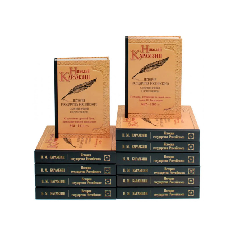 История государства Российского с комментариями и примечениями в 12 томах: Том 1. О состоянии древней Руси. Призвание князей варяжских. 862-1014 гг.; Том 2. От Святополка до Мстислава. 1015-1169 гг.; Том 3. От великого князя Андрея до великого князя Георгия Всеволодовича. 1169-1238 гг.; Том 4. От великого князя Ярослава II Всеволодовича до великого князя Дмитрия Константиновича. 1238-1362 гг.; Том 5. От великого князя Дмитрия Иоанновича (Донского) до великого князя Василия Василиевича (Темного). 1363-1462 гг.; Том 6. Государь, державный великий князь Иоанн III Васильевич. 1462-1505 гг.; Том 7. Государь, великий князь Василий Иоаннович. 1505-1533 гг.; Том 8. Великий князь и царь Иоанн IV Васильевич II (Грозный). 1533-1560 гг.; Том 9. Продолжение царствования Иоанна Грозного. 1560-1584 гг.; Том 10. Царствование Федора Иоанновича. 1584-1598 гг.; Том 11. Царствование Бориса Годунова и Лжедмитрия. 1598-1606 гг.; Том 12. Царствование Василия Иоанновича Шуйского и междоцарствие. 1606-1612 гг.