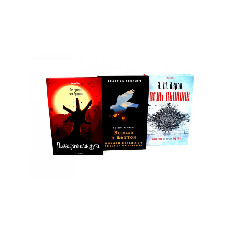 Комплект содержит книги: "Пожиратели душ" Петранелл ван Арсдейл Алис было всего семь лет, когда она впервые увидела пожирателей душ - сестер-близнецов, брошенных отцом и превратившихся в чудовища, которые питаются человеческими страхами. В деревнях края Бид шепчутся, будто сестры - исчадия Зверя, но Алис чувствует с ними странную связь. И когда приходит беда, девочка пускается в путешествие по самым дремучим чащам темного леса и собственной души. "Король в желтом" Робер Чамберс Начало альтернативного XX века. Во всех городах Соединенных Штатов гуманное правительство открывает Дворцы Смерти для желающих свести счеты с жизнью. Запрещенная к распространению богохульная пьеса "Король в Желтом" вызывает эпидемию душевных расстройств. В Америке и Европе люди видят тревожные сны, наблюдают странные совпадения, спасаются от преследований. Предание о божественно прекрасной Каркозе оживает на страницах величайшего цикла рассказов конца XIX - начала XX века. Вселенная "Короля в Желтом" в разное время вдохновляла так