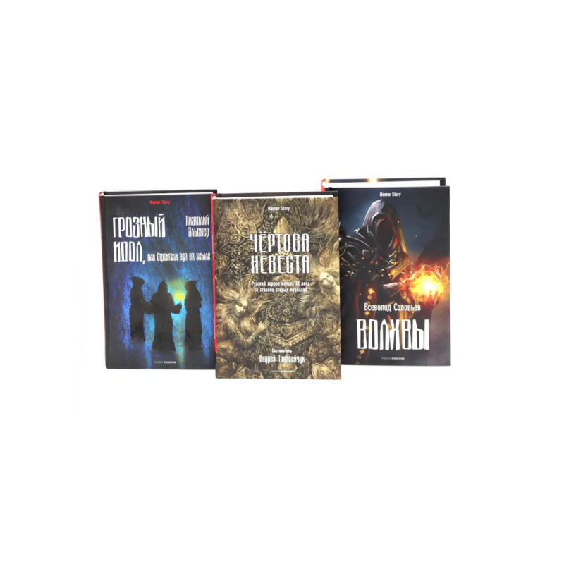 Вкомплект вошли три книги вжанре "хоррор": "Чертова невеста. Русский хоррор начала ХХ века со страниц старых журналов" Вэтом сборнике отечественного хоррора началаXX века широко представлено многообразие жанра настраницах периодики того времени. Составитель ориентировался, разумеется, налучшие образцы. Это незначит, что вполе зрения попали только классики или фигуры первого ряда. Нельзя было пройти мимо замечательных сюжетов А.И.Куприна (его "фольклорная страшилка" "Серебряный волк" открывает сборник) иВ.Я.Брюсова ("Взеркале"), мрачных историй Ф.К.Сологуба ("Красногубая гостья") иА.С.Грина ("Львиный удар"). Непредставлялось возможным миновать одну иззнаковых фигур начала века- М.П. Арцыбашева ("Ужас"), носознательно невключен, например, Леонид Андреев- его тексты, втом числе "страшные", регулярно переиздаются. Норусские "страшные рассказы" первой половиныXX века достойного уровня сочиняли итакие авторы, скоторыми современный читатель, увы, совершенно незнаком. Это Николай Кар