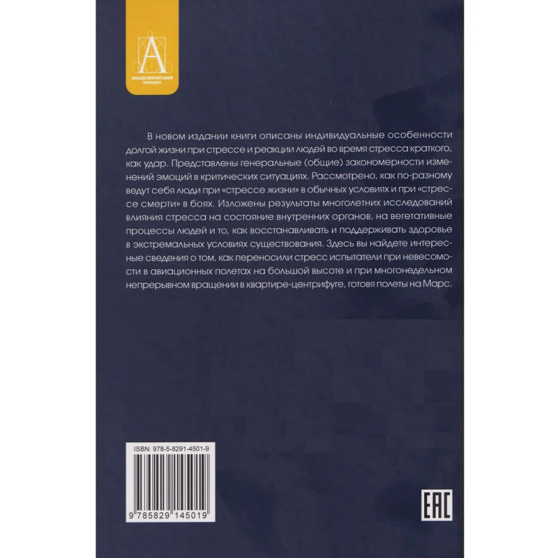 Описаны индивидуальные особенности долгой жизни при стрессе и реакции людей во время стресса краткого, как удар. Представлены генеральные (общие) закономерности изменений эмоций в критических ситуациях. Рассмотрено, как по-разному ведут себя люди при «стрессе жизни» в обычных условиях и при «стрессе смерти» в боях. Доступно изложены результаты многолетних исследований влияния стресса на состояние внутренних органов, на вегетативные процессы людей и то, как восстанавливать и поддерживать здоровье в экстремальных условиях существования. Здесь вы найдете интересные сведения о том, как переносили стресс испытатели при невесомости в авиационных полетах на большой высоте и при многонедельном непрерывном вращении в квартире-центрифуге, готовя полеты на Марс.