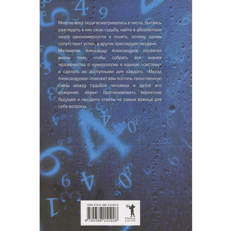 Эта книга представляет собой полную версию уникальной системы А.Ф. Александрова - знаменитого ученого и исследователя, основателя отечественной школы нумерологии. Метод Александрова позволяет заглянуть в будущее, постичь таинственную связь между судьбой любого человека и датой его рождения. Овладев секретами нумерологии, вы сможете стать настоящим знатоком человеческих типов и характеров; узнать о скрытых механизмах судьбы, которые возносят политиков и бизнесменов на вершину власти и успеха. Простые и доступные приемы помогут вам найти кратчайшую дорогу к прочному финансовому благополучию; построить гармоничные отношения с родными, близкими, друзьями, сослуживцами; обрести свою вторую половину и построить идеальный любовный союз. Воспользуйтесь этой книгой и направьте свою жизнь по идеально верному пути, на котором вас ждут процветание, счастье и удача!