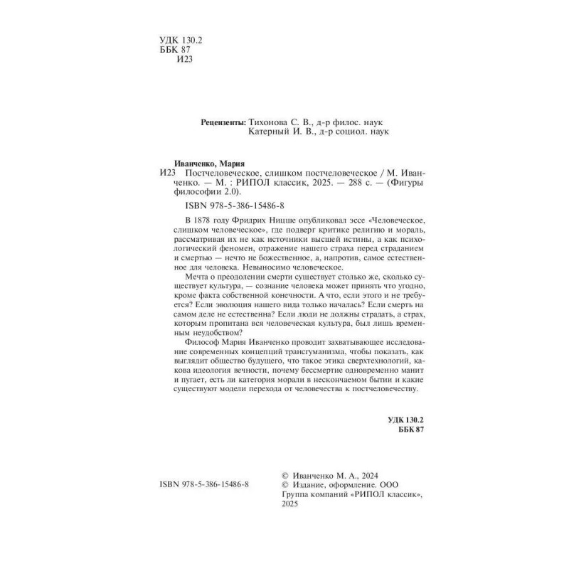 Характеристики Постчеловеческое, слишком постчеловеческое. Иванченко М.