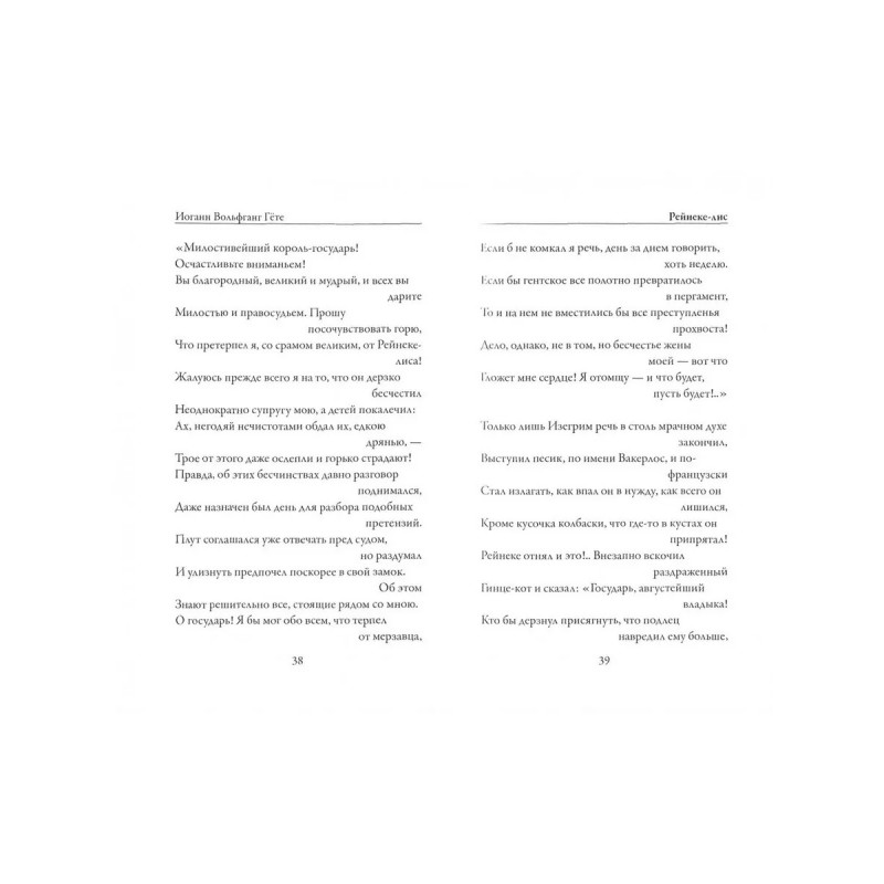 "Рейнеке-лис" (1794) - эпическая поэма, блистательное обращение Гёте к традиции животного эпоса, сложившейся еще в средние века. В своей поэме автор умело высмеял феодальное общество. Под масками зверей выведены представители всех сословий: крупные феодалы в образах медведя, волка, барсука и мелкая сошка - зайцы, куры, петухи, синички. В центре поэмы - хитрый лис, который всегда оставляет в дураках своих противников. Произвол власть имущих, развращенность духовенства, продажность судей, ненасытная жажда наживы "сильных мира сего" - вот конкретные приметы как средневековой, так и современной Гёте действительности. Издание дополнено вступительной статьёй специалиста по литературе и искусству Оксаны Разумовской.