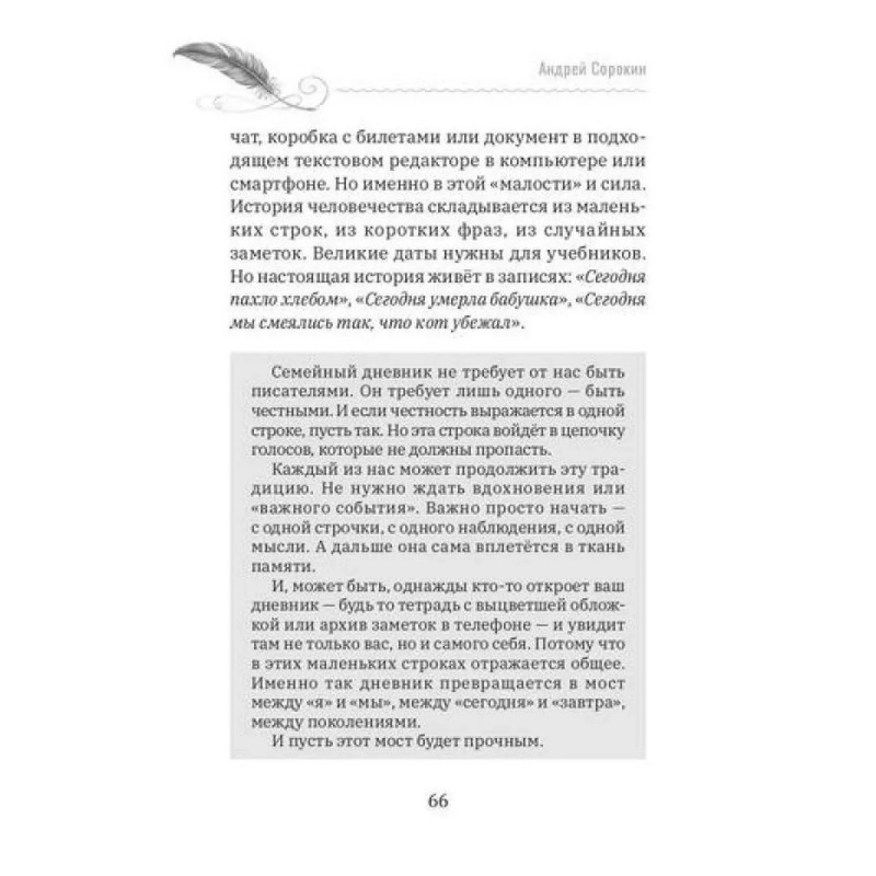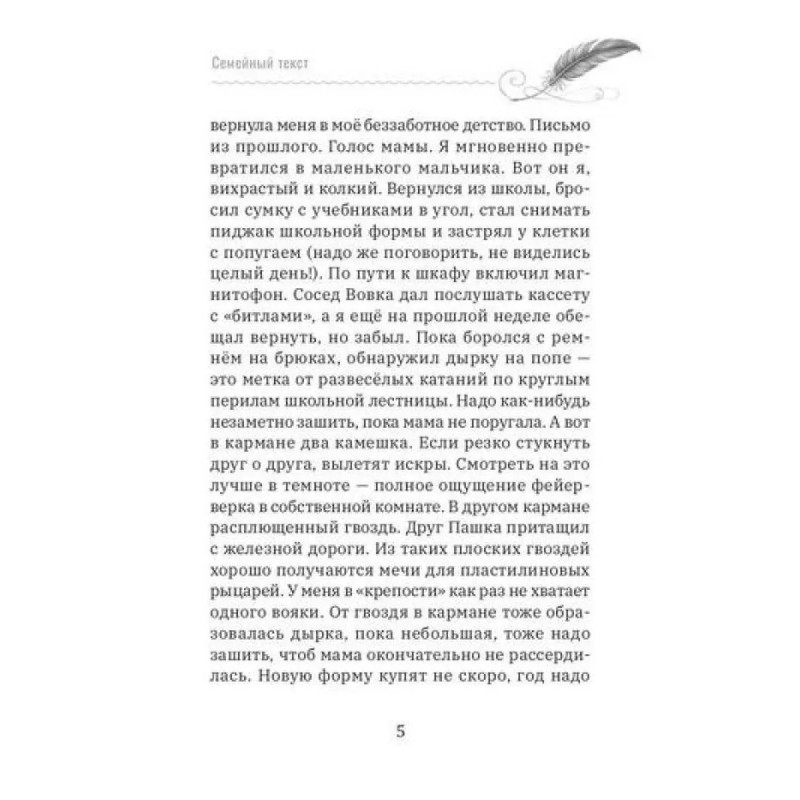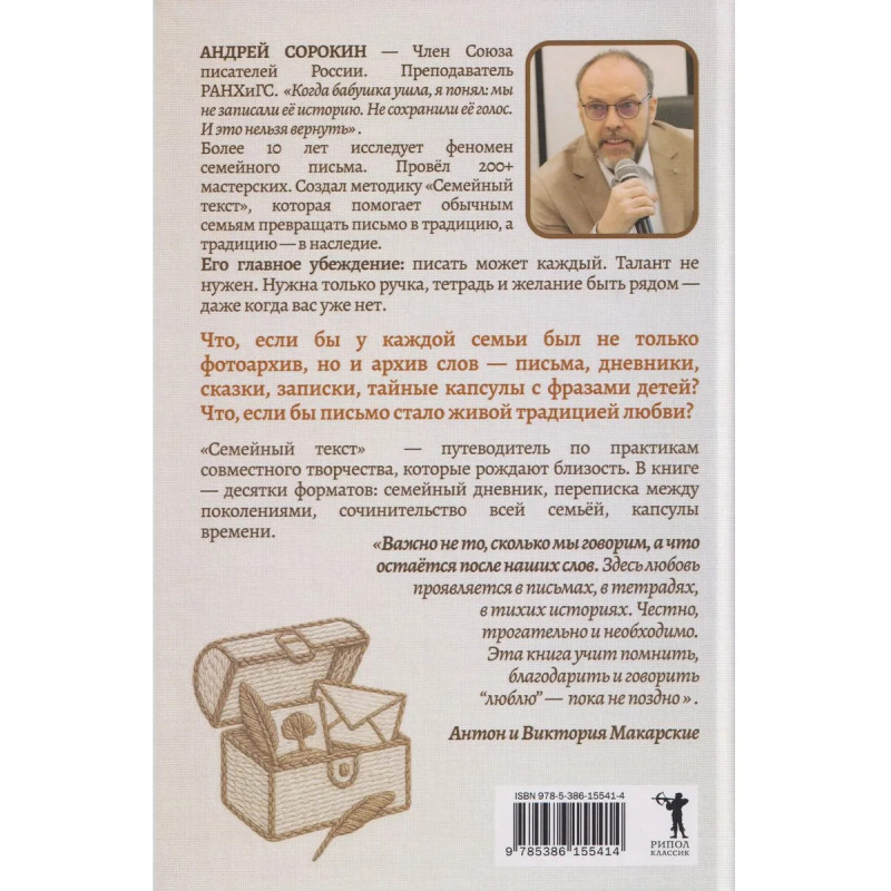 Современная книга о простых письменных практиках, которые помогают укрепить связь между поколениями, сохранить память и выстроить семейную культуру через текст. Это не учебник по писательству, а живая книга-инструмент, вдохновляющая на совместное творчество в семье — независимо от возраста, профессии и литературного опыта.