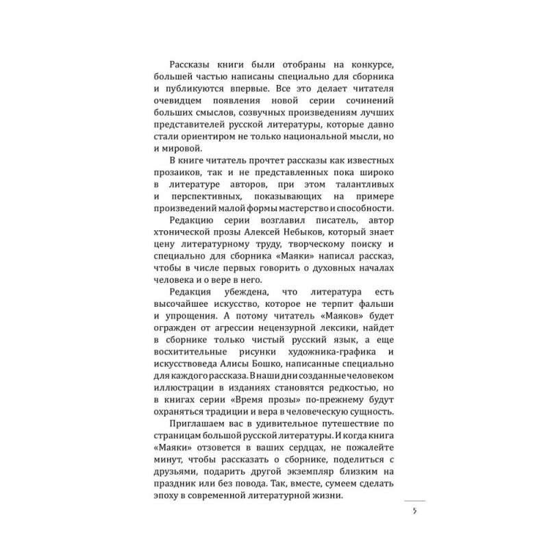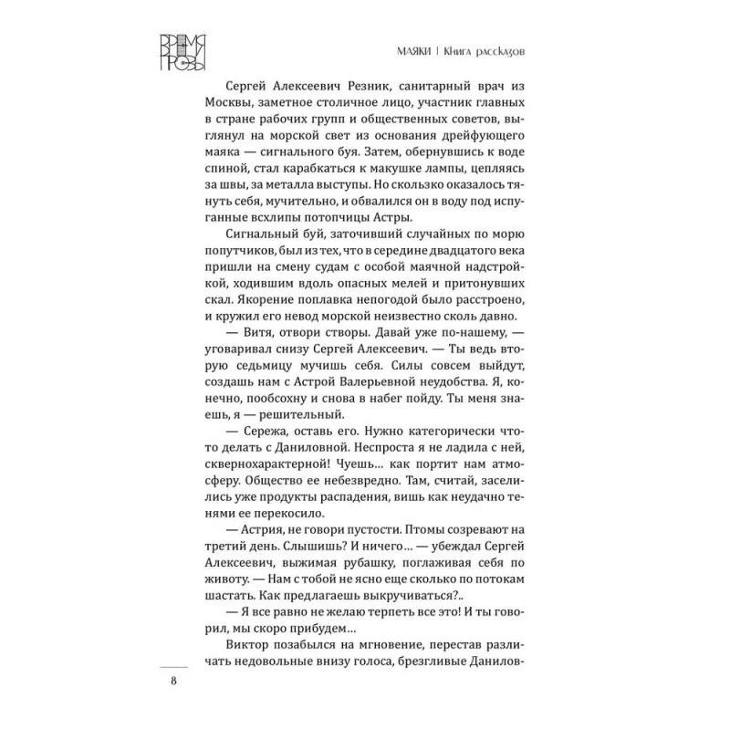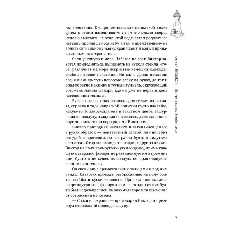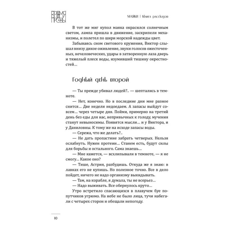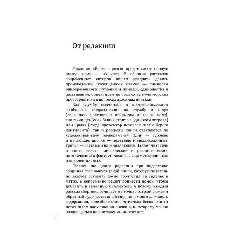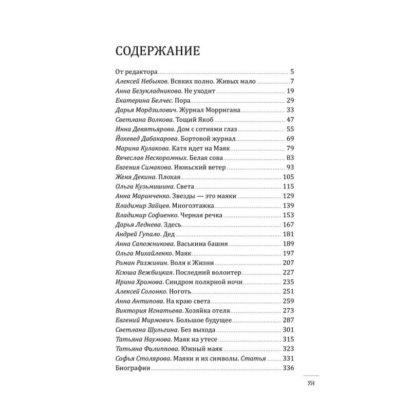 Маяки этого сборника укутаны в туманы и тайны, затеряны в пространствах и временах, увидены с разных дистанций и ракурсов: бродячие маяки и маяки, сросшиеся с прибрежными скалами, арктические и крымские, несущие смерть и дарующие надежду. Встречаются в рассказах маяки-метафоры, звездные маяки, маяки-люди, нарратив от имени маяка и маяк, служащий целью разрушительного трипа. Рукотворный, искусственный свет маяков в пределе смыслового поля книги понимается как нерукотворный и вечный. А потому герои рассказов идут к маякам для медитации и исповеди, спасаются в маячных пределах от суеты мира. Маяк выглядит как идеальное место для любых практик: будь то развеивание праха умершего, отправление его в последний путь или воссоединение семьи. Восхождение на маяк символизирует духовный рост. И зачастую в очертаниях маяков видится их вечный архетип — одинокая Башня, игровая площадка стихийных сил, место финальной схватки добра и зла.
