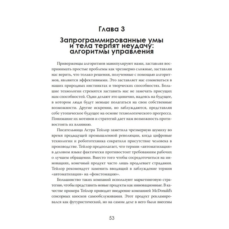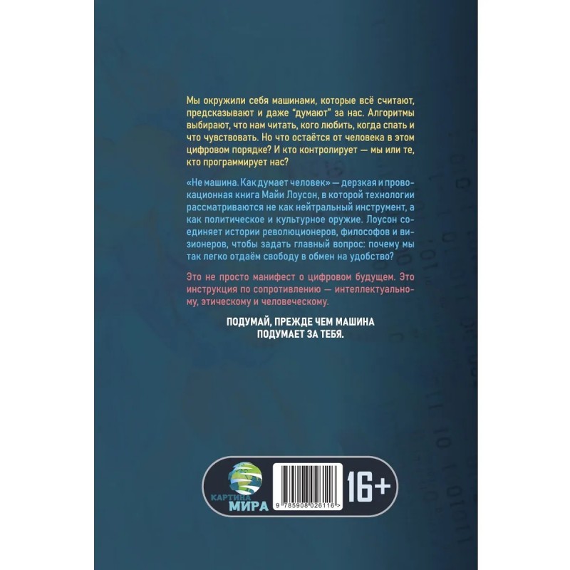 Мы окружили себя машинами, которые всё считают, предсказывают и даже думают за нас. Алгоритмы выбирают, что нам читать, кого любить, когда спать и что чувствовать. Но что остаётся от человека в этом цифровом порядке? И кто контролирует мы или те, кто программирует нас?Не машина. Как думает человек дерзкая и провокационная книга Майи Лоусон, в которой технологии рассматриваются не как нейтральный инструмент, а как политическое и культурное оружие. Лоусон соединяет истории революционеров, философов и визионеров, чтобы задать главный вопрос: почему мы так легко отдаём свободу в обмен на удобство?Это не просто манифест о цифровом будущем. Это инструкция по сопротивлению интеллектуальному, этическому и человеческому. Подумай, прежде чем машина подумает за тебя.