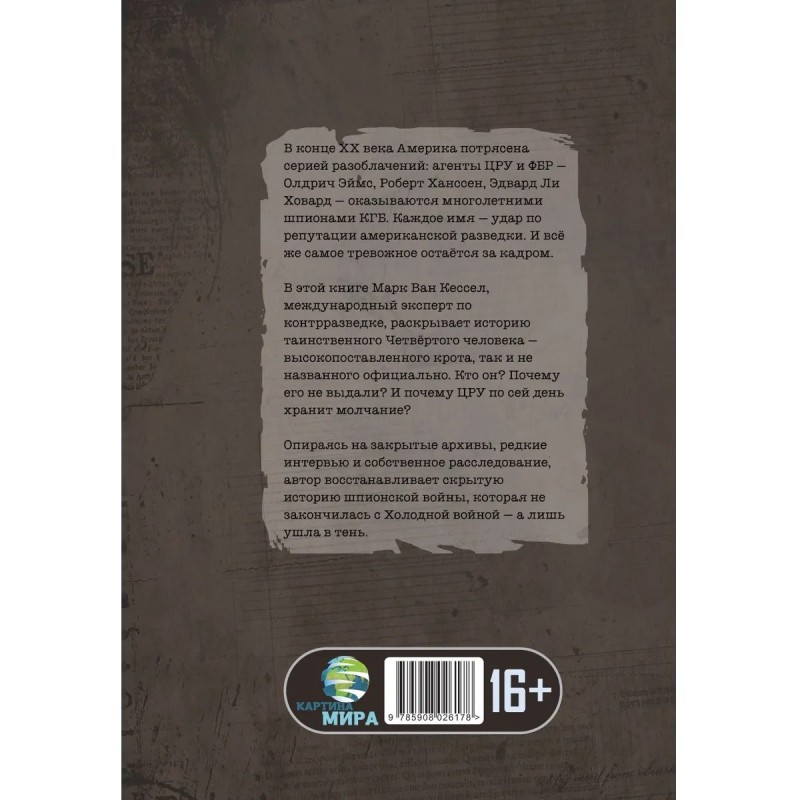 В этой книге Марк Ван Кессел, международный эксперт по контрразведке, раскрывает историю таинственного Четвёртого человека — высокопоставленного крота, так и не названного официально. Кто он? Почему его не выдали? И почему ЦРУ по сей день хранит молчание?
