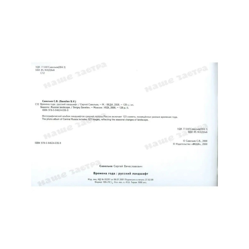 Времена года: русский ландшафт. Савельев С. В. Времена года : русский ландшафт. Фотографический альбом ландшафтов средней полосы России включает 123 сюжета, посвященных разным временам года.