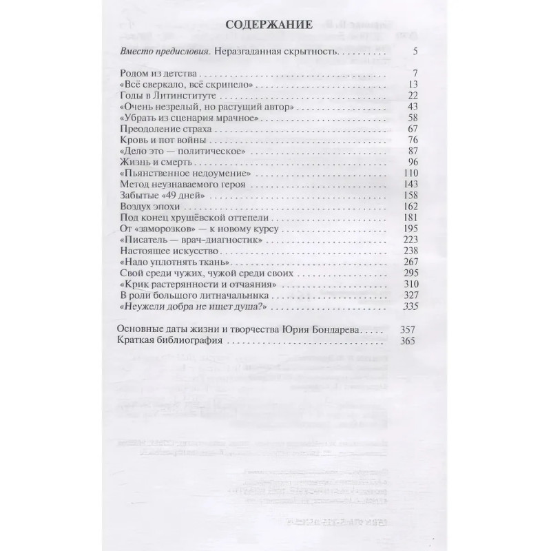 Юрий Васильевич Бондарев (1924 2020) признан одним из классиков советской литературы, зачинателем лейтенантской прозы. Его повесть Батальоны просят огня, романы Горячий снег, Тишина, Берег, Выбор стали новым словом в отображении военной темы, они многократно переизданы и экранизированы. Много лет Бондарев входил в руководство Союза писателей России, а позже возглавлял его. Но о его жизни известно очень мало писатель предпочитал не выносить на публику свои личные дела и воспоминания. Автор первой биографии Бондарева, известный критик и публицист Вячеслав Огрызко, кропотливо собрал в архивных фондах, книгах и статьях факты, рисующие не только живой портрет его героя, но и литературную жизнь советской эпохи.
