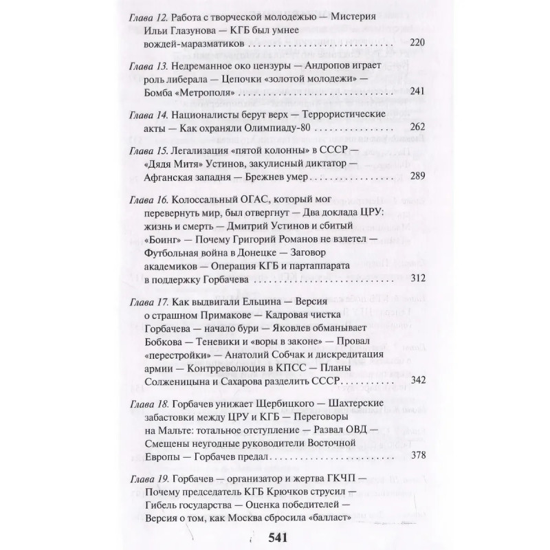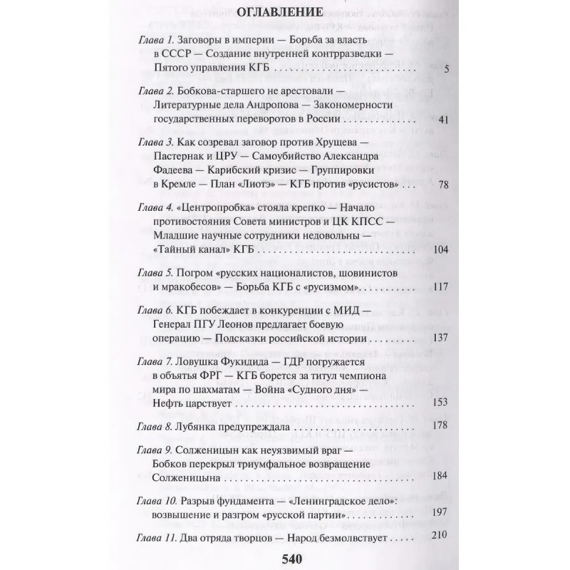 Книга посвящена героям и антигероям, заговорам и борьбе за власть в Российской империи и Советском Союзе. Многое, что раньше было секретным, автору известно из бесед с 1-м заместителем председателя КГБ СССР Ф. Д. Бобковым, начальником Первого главного управления КГБ (внешняя разведка) Л. В. Шебаршиным, начальником Аналитического управления КГБ Н. С. Леоновым. В войне группировок на Центральном телевидении СССР, в которой выжили не все, автор участвовал лично.