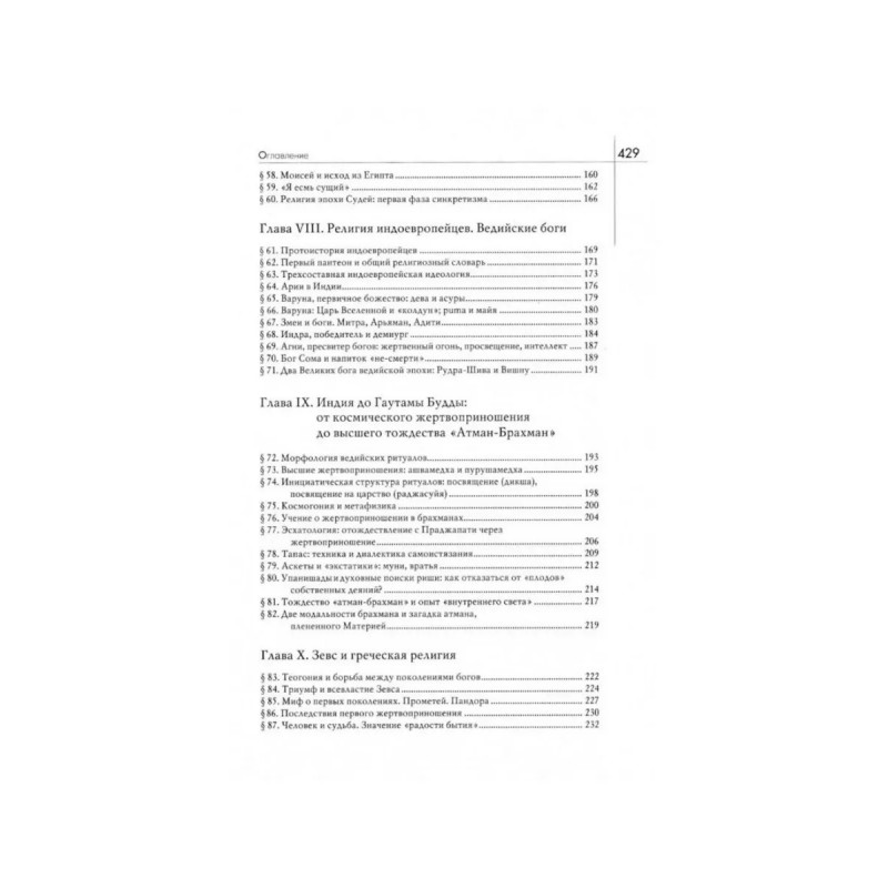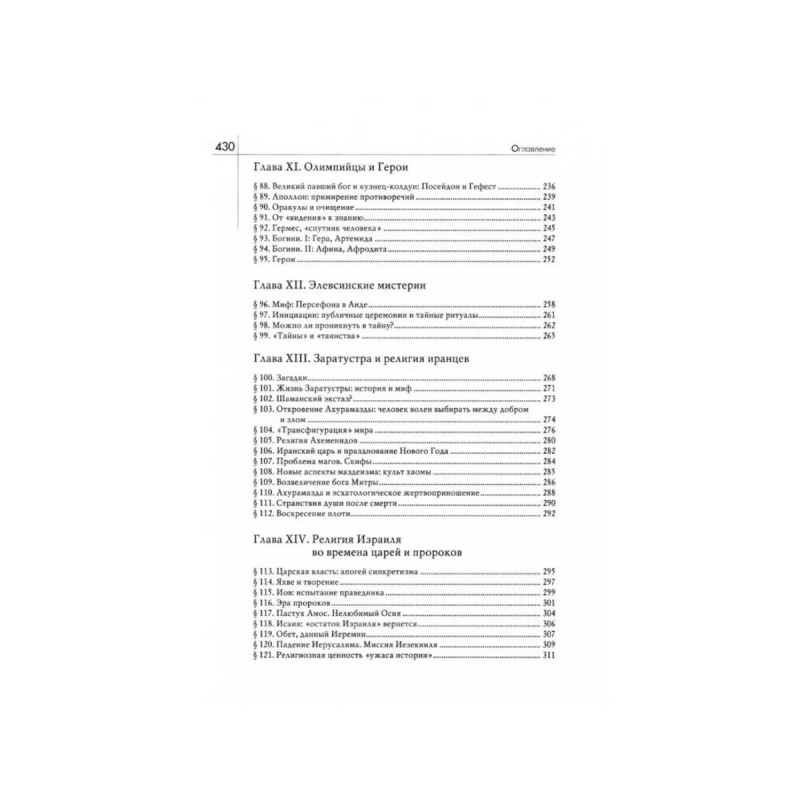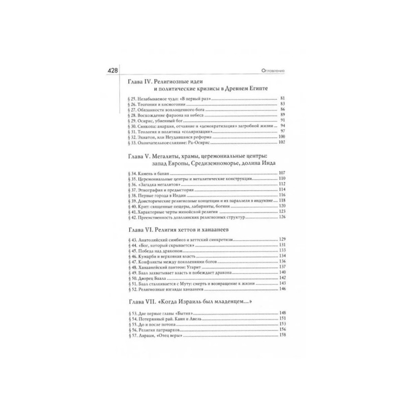 История веры и религиозных идей: от каменного века до элевсинских мистерий. Элиаде М. Данный труд является классическим образцом исследования в области истории религии. Религиозные идеи представлены здесь не только в хронологическом порядке, но и объединены единым пониманием многообразия религиозной жизни всех культур и континентов. Элиаде виртуозно владеет методами сравнительной антропологии и демонстрирует общие тенденции в развитии религиозных идей. "Для историка религий знаменательно всякое проявление священного: каждый ритуал, каждый миф, каждое верование и каждый образ божества отражают опыт священного и потому несут в себе понятия бытия, смысла, истины". Книга охватывает период от магических миров каменного века до религий древних цивилизаций и религии библейского откровения: "На самых архаических уровнях культуры жить, как подобает человеку, - само по себе есть религиозное действо, потому что принятие пищи, половые отношения и труд имеют сакраментальную ценность."