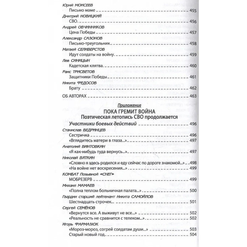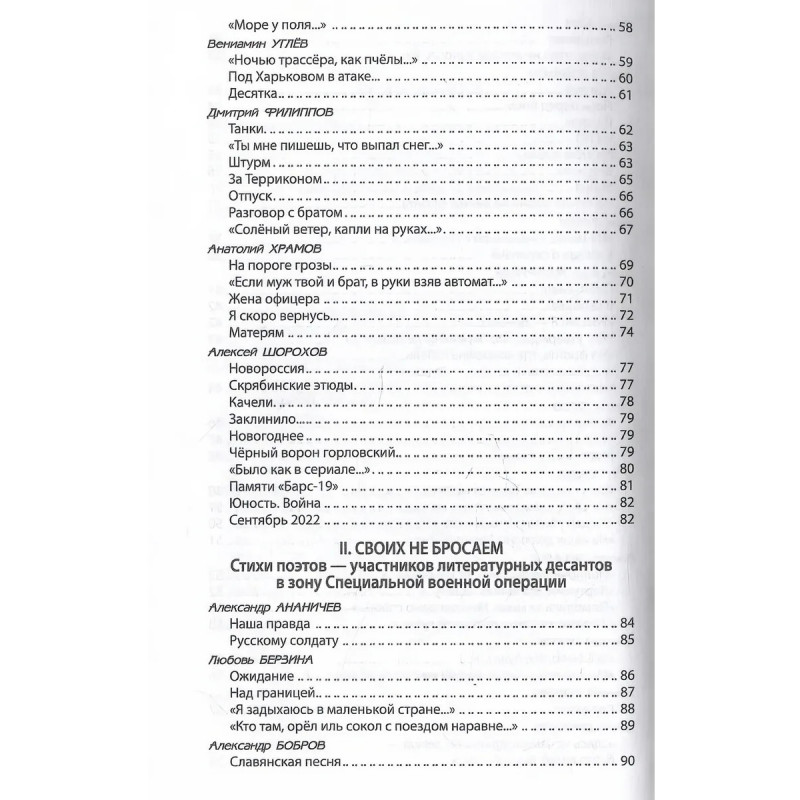 Антология современной патриотической поэзии Союза писателей России За други своя представляет творчество около двухсот поэтов, откликнувшихся на Специальную военную операцию (СВО) и драматические события последних лет. Всех их объединяют живая историческая память, неприятие нацизма, поддержка воинов России и вера в нашу победу. В антологии, ставшей итогом выпуска ранее многочисленных сборников патриотической поэзии, вошли стихотворения поэтов, сражающихся на линии фронта и павших в боях за Родину, участников литературных десантов в зону СВО, а также авторов, представляющих самые различные регионы страны, в том числе ДНР, ЛНР, Запорожскую, Херсонскую области и многие национальные республики России. В отдельные разделы выделены проникновенная женская поэзия и произведения воспитанников кадетских школ и суворовских училищ. Представленная читателям палитра стихотворений яркое отражение настроений общества, выраженное в поэтическом слове.