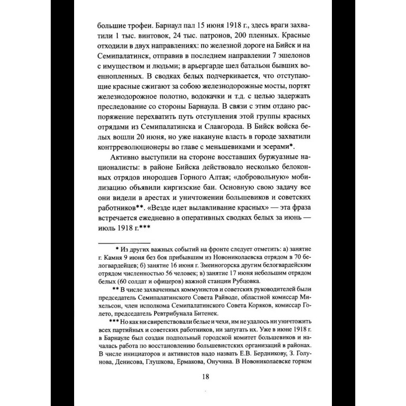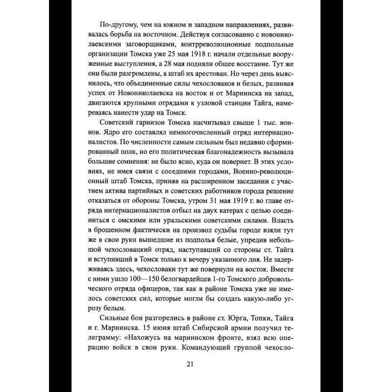 Г.Х. Эйхе — активный участник Гражданской войны, последовательно занимавший должности командующего 5‑й Красной армии Восточного фронта и главнокомандующего вооруженными силами Дальневосточной республики. В своей книге, основанной как на личных воспоминаниях, так и на материалах советских и белогвардейских архивов, он не только подробно освещает историю возникновения и развития партизанского движения в Сибири и на Дальнем Востоке, но и показывает, как внутренние раздоры и столкновения интересов различных участников интервенции способствовали крушению колчаковского режима.