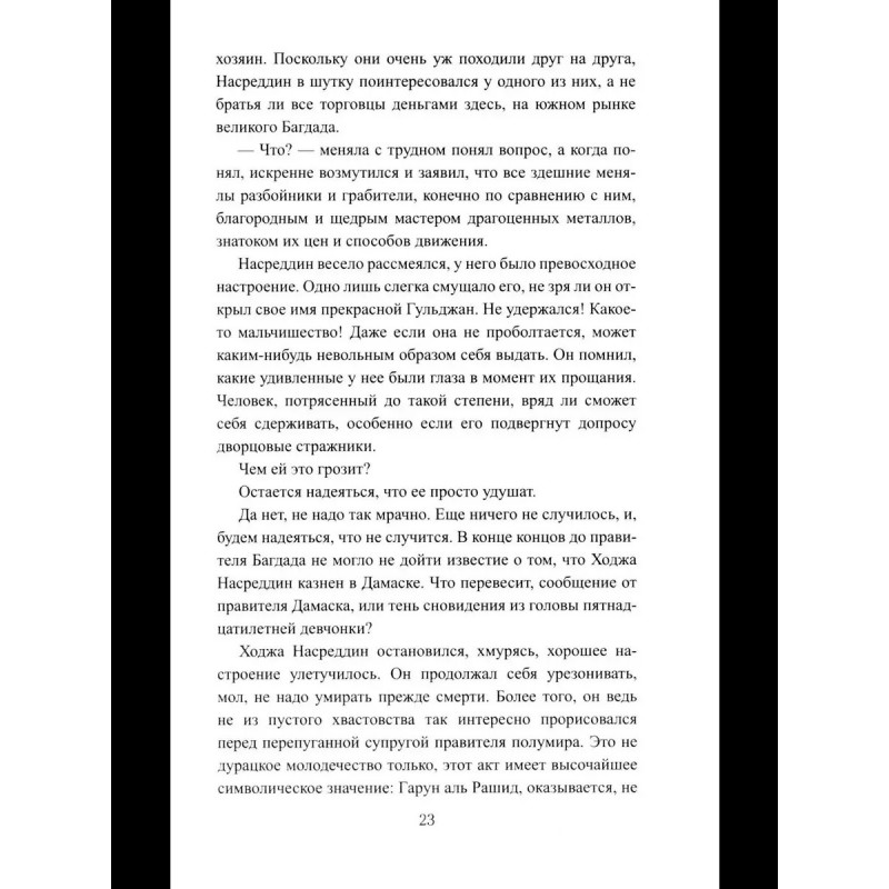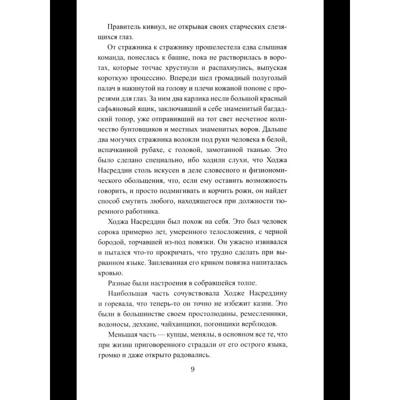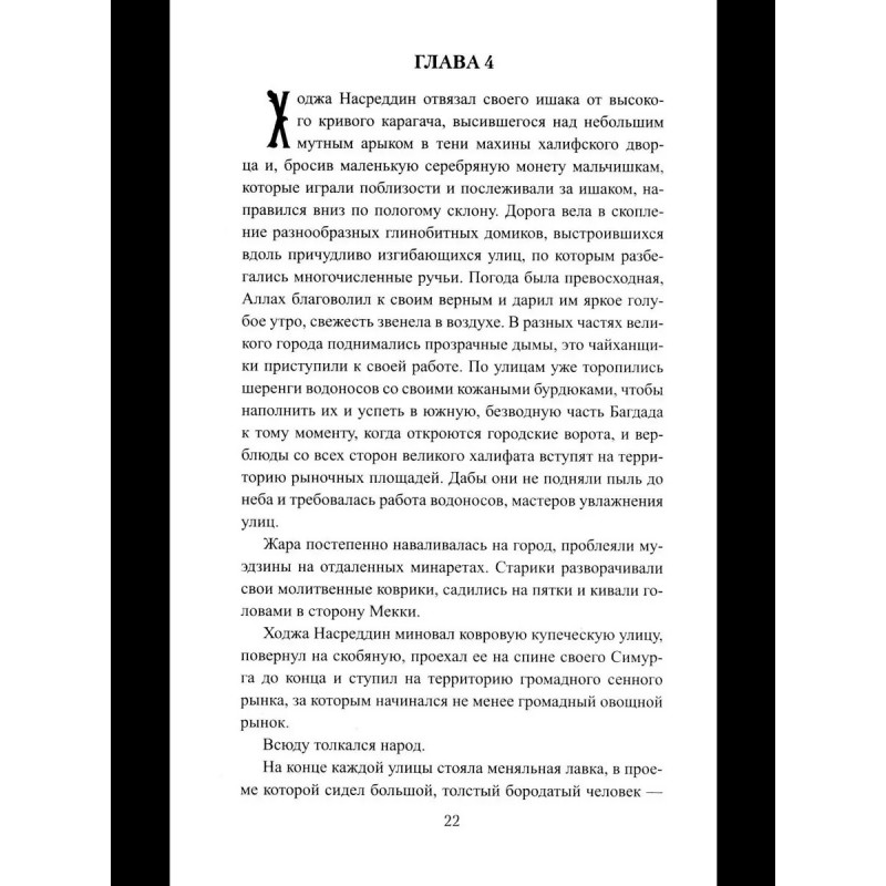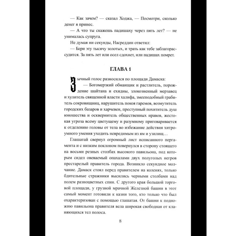 Случилось это в городе Багдаде во времена правления великого халифа Гаруна аль Рашида, в VIII веке. Однажды в гарем багдадского дворца пробрался некий оборванец. Он назвал себя Ходжой Насреддином, а его дерзкий поступок, конечно же, возмутил всеобщее спокойствие. Так и началась эта история, истинная и в то же время фантастическая, похожая на одну из сказок Шахерезады. Иначе и быть не может, когда речь идет о такой легендарной личности, как Ходжа Насреддин. А чему из рассказанного можно верить, пусть судит сам читатель.