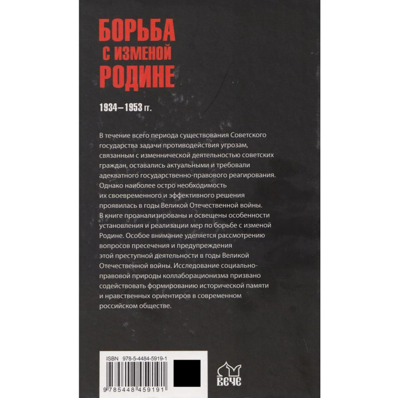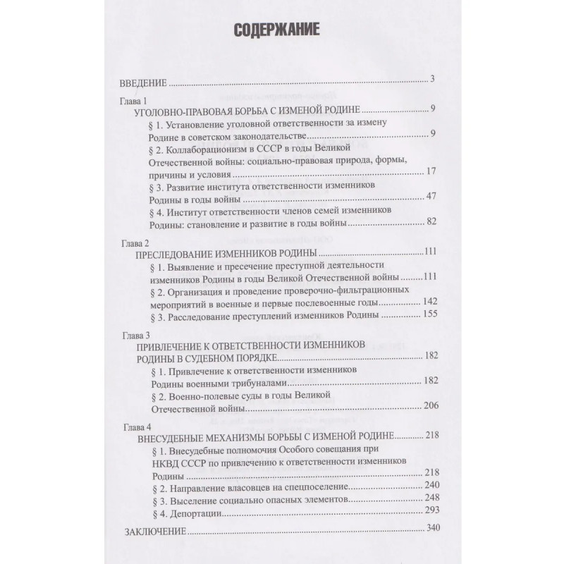 В течение всего периода существования Советского государства задачи противодействия угрозам, связанным с изменнической деятельностью советских граждан, оставались актуальными и требовали адекватного государственно-правового реагирования. Однако наиболее остро необходимость их своевременного и эффективного решения проявилась в годы Великой Отечественной войны.В книге проанализированы и освещены особенности установления и реализации мер по борьбе с изменой Родине. Особое внимание уделяется рассмотрению вопросов пресечения и предупреждения этой преступной деятельности в годы Великой Отечественной войны. Исследование социально-правовой природы коллаборационизма призвано содействовать формированию исторической памяти и нравственных ориентиров в современном российском обществе.