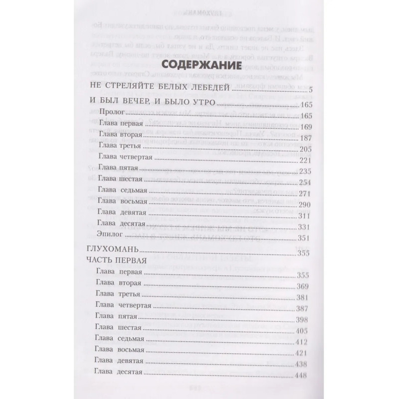 В сборник произведений замечательного писателя Бориса Львовича Васильева (1924—2013) вошли два его романа и повесть. Главный герой романа «Не стреляйте белых лебедей» Егор Полушкин — непутевый мужик, по мнению односельчан, — оказался наделен талантом истинного художника и находит в конце концов свое призвание — любить и заботиться о прекрасном. Став лесничим, он с особой нежностью бережет семейство белых лебедей, но однажды в лес приходят браконьеры… Повесть «И был вечер, и было утро» посвящена событиям революции 1905 года, а роман «Глухомань» о людях, живущих в российской глубинке, которых не минуют все самые значительные события, потрясшие страну в 1980—1990-х годах, — Афганская война, перестройка, передел собственности…Книга издается к 100-летию со дня рождения автора.