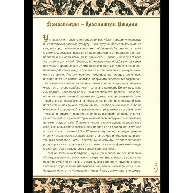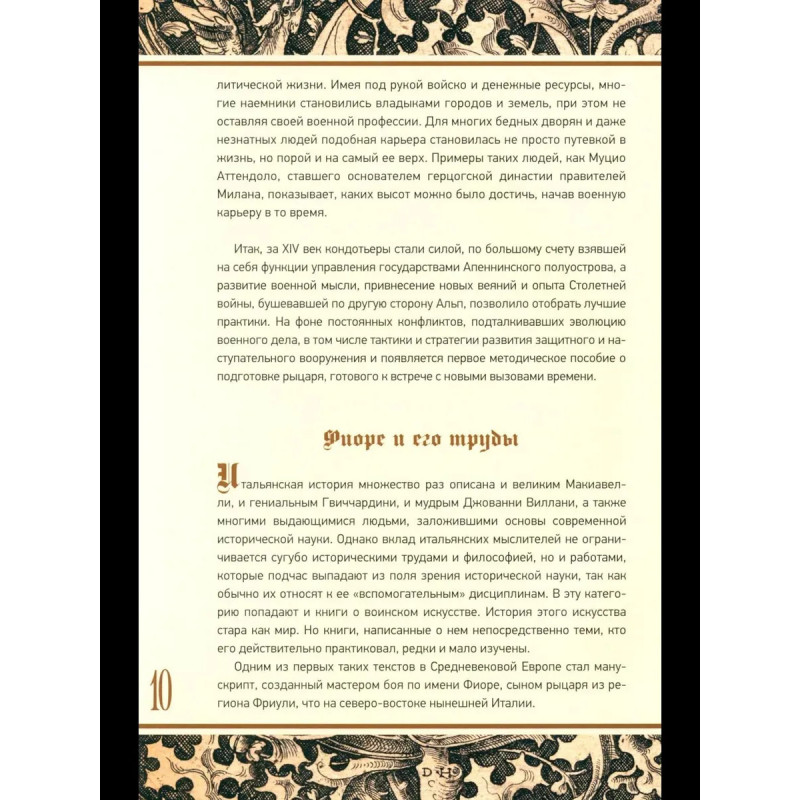 Впервые на русском языке публикуется комментированный перевод Flos Duellatorum — одного из самых ранних трактатов, посвященных боевому искусству cредневековой Европы. Манускрипту предшествует очерк, рассказывающий о его авторе, мастере фехтования Фиоре из Премариакко, жившем в конце XIV века, его судьбе и эпохе, вооружении и способах подготовки воинов. Фиоре не просто описал известные ему приемы, но и составил методику и схему обучения искусству боя — от борьбы без оружия до поединка верхом. Его труд позволяет не только составить представление о том, как действовали воины Средних веков, но и использовать книгу в качестве пособия для занятий историческим фехтованием и реконструкции европейских боевых искусств.