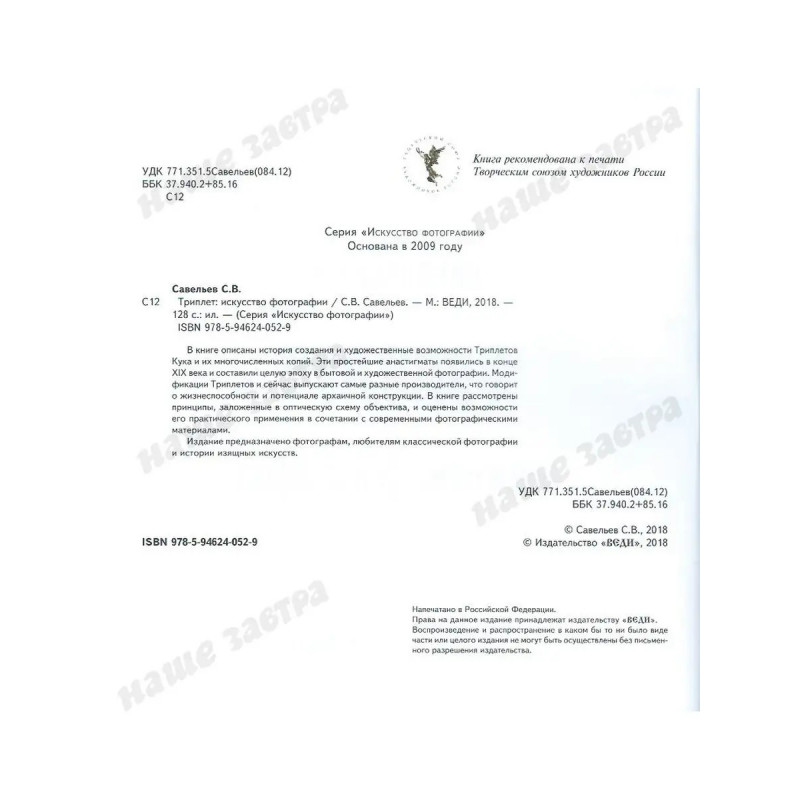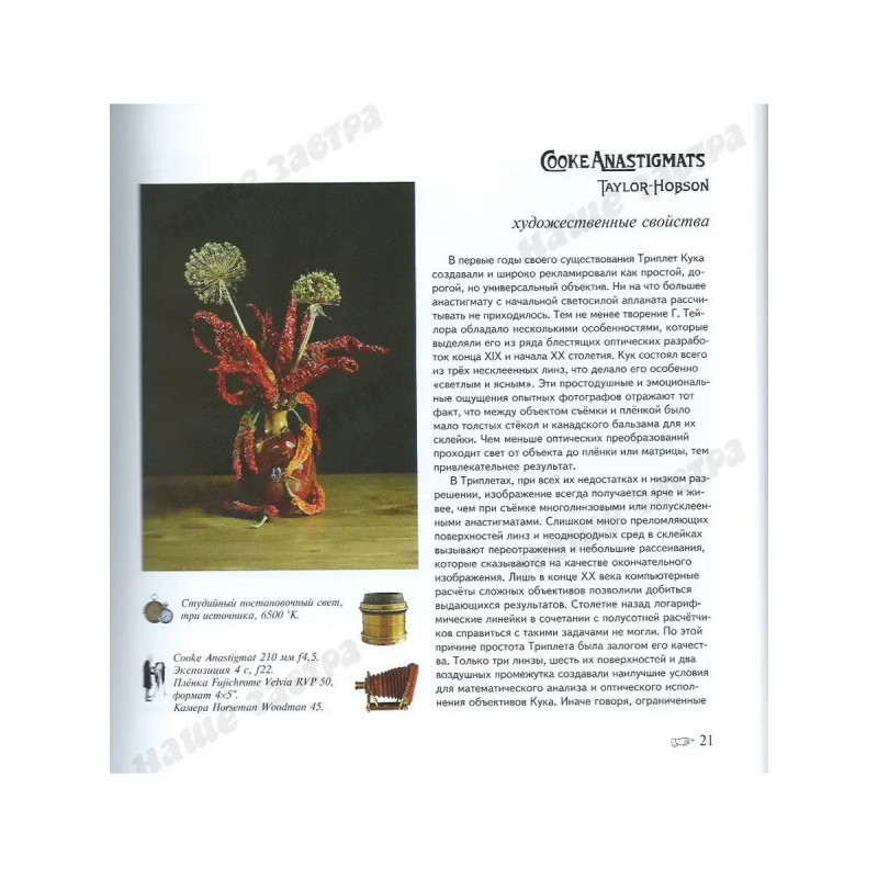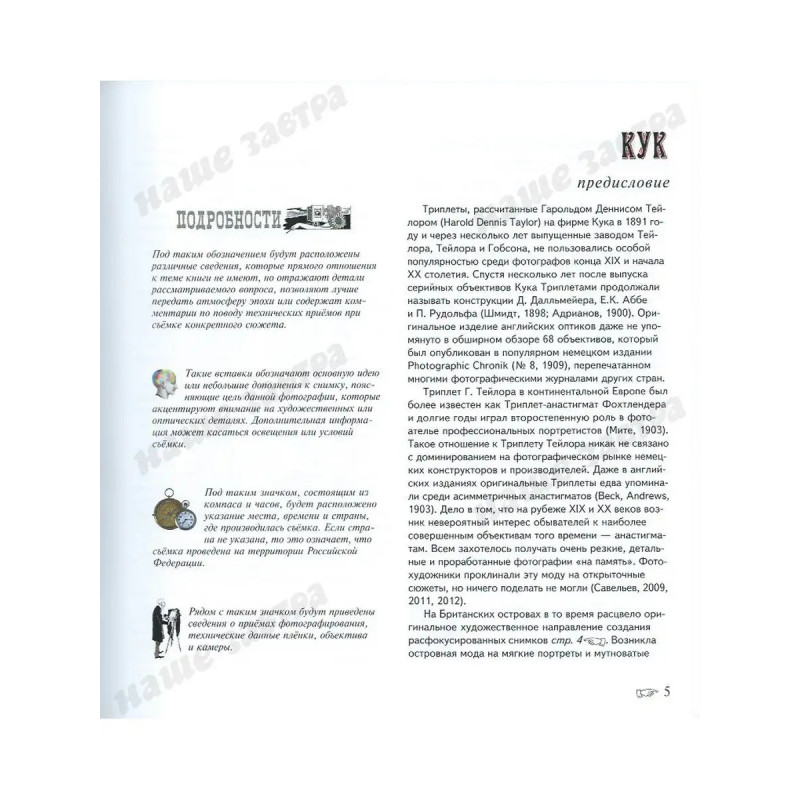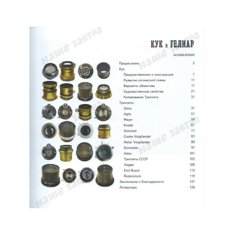 ISBN 978-5-94624-052-9. Триплет: искусство фотографии. Савельев С. В. В книге описаны история создания и художественные возможности Триплетов Кука и их многочисленных копий. Эти простейшие анастигматы появились в конце XIX века и составили целую эпоху в бытовой и художественной фотографии. Модификации Триплетов и сейчас выпускают самые разные производители, что говорит о жизнеспособности и потенциале архаичной конструкции. В книге рассмотрены принципы, заложенные в оптическую схему объектива, и оценены возможности его практического применения в сочетании с современными фотографическими материалами.