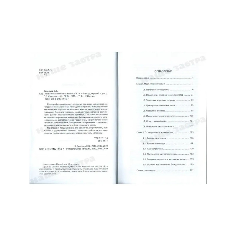 Характеристики Возникновение мозга человека: Том 1. Савельев С.В.