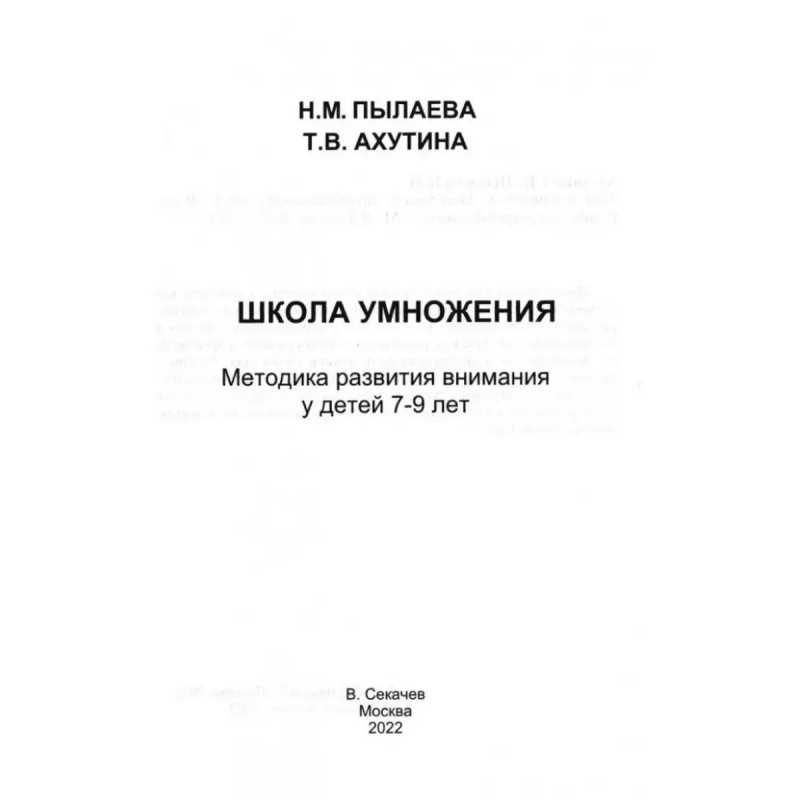 Характеристики Школа умножения. Методика развития внимания у детей 7-9 лет.