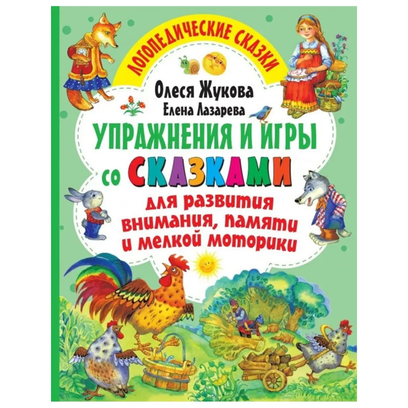 Упражнения и игры со сказками для развития внимания, памяти и мелкой моторики. Жукова О. С., Лазарева Е. Н. В этой книге вы найдете увлекательные задания, выполняя которые ваш малыш будет осваивать разнообразные навыки вместе с героями популярных русских сказок. Задания, подготовленные ведущими логопедами-практиками, учитывают все особенности восприятия детей дошкольного возраста. Занимаясь по книге, ребенок потренирует внимание и память, разовьет мелкую моторику и речь, пополнит словарный запас. Для дошкольного возраста.