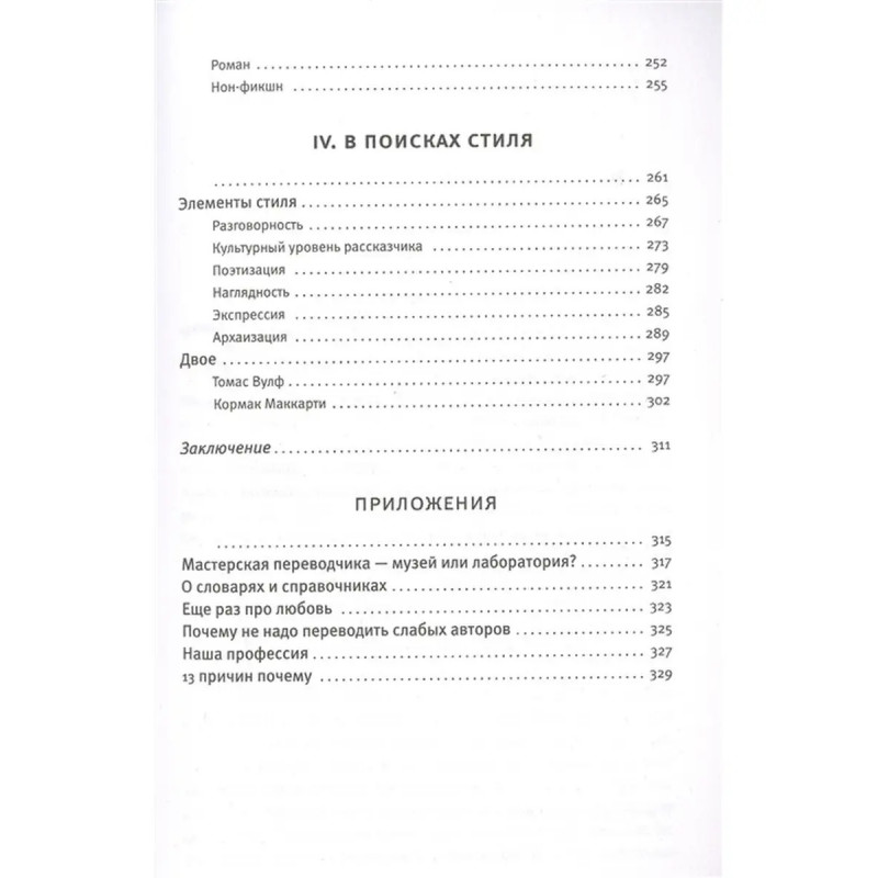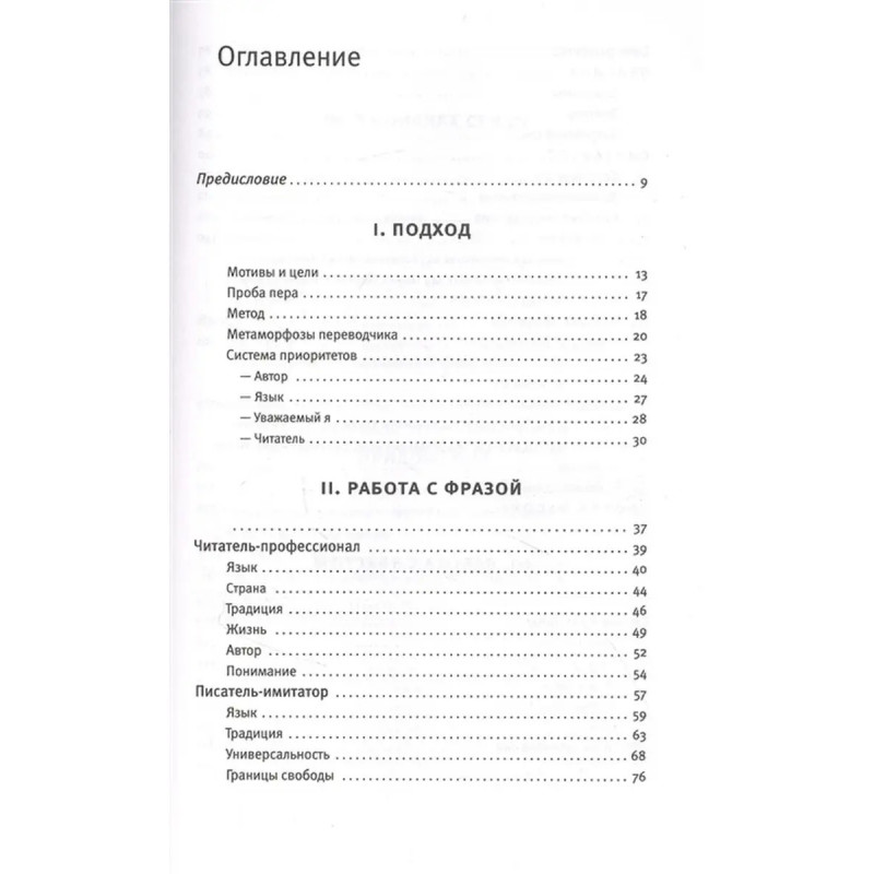 ISBN 9785171473020. Эта книга известного переводчика с английского Владимира Бабкова попытка описать процесс художественного перевода изнутри, рассказать о том, с какими трудностями встречаются переводчики и как они их преодолевают. Она может пригодиться в качестве пособия другим переводчикам, особенно начинающим, но придется кстати и любознательным читателям, которые хотят понять, насколько сильно и как именно преображается в ходе перевода иноязычное произведение.