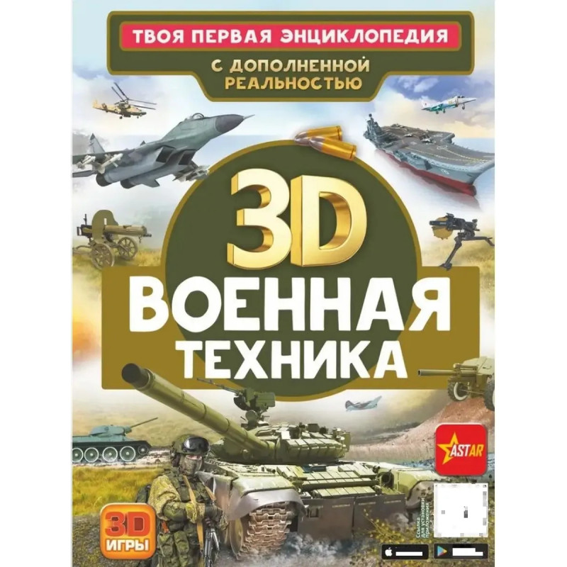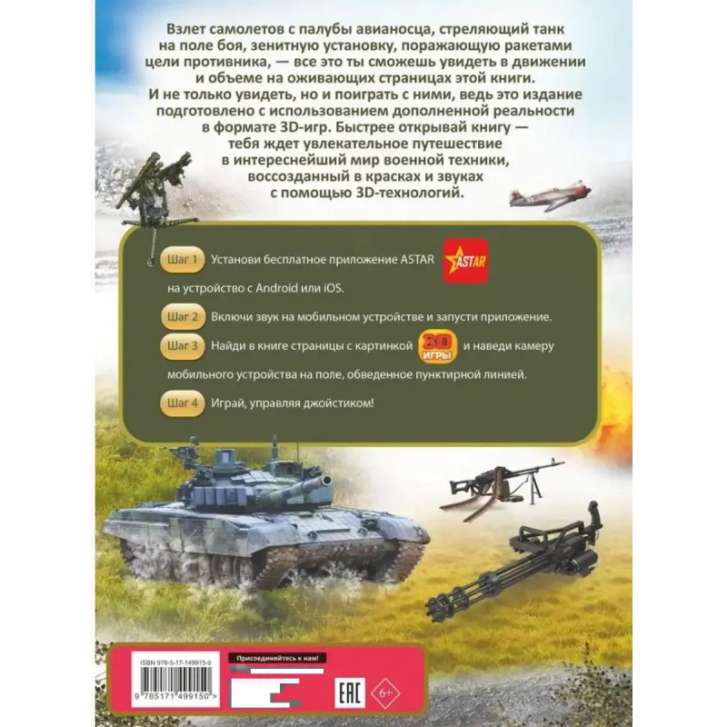 ISBN 9785-17149-9150. Военная техника. Первая энциклопедия с дополненной реальностью познакомит тебя с военной техникой, основные образцы которой ты увидишь в объеме, движении и звуковом сопровождении. Для среднего школьного возраста.