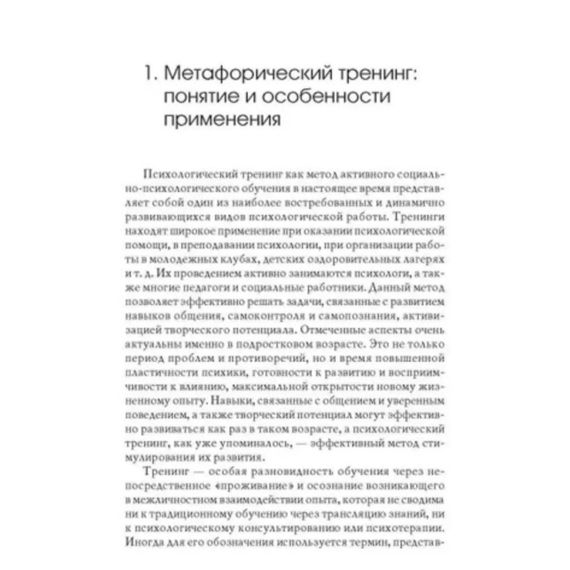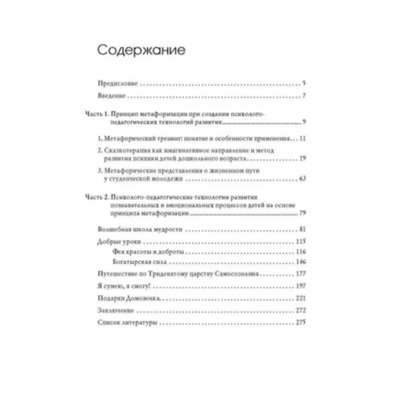 Метафоризация в развивающих психолого-педагогических технологиях. Вачков И. В. В монографии раскрывается принцип метафоризации, который может быть реализован при создании развивающих психолого-педагогических программ для детей и подростков, что представляет интерес для психологов образования как с теоретической, так и с практической точки зрения. В книге подробно описаны сценарные планы занятий по указанным программам. Особое внимание уделяется сказкотерапии и сказочным метафорам, используемым в рамках этого направления. Книга может представлять интерес как для специалистов, изучающих разнообразные возможности метафоры научных работников, аспирантов магистрантов, так и для практических психологов и педагогов, заинтересованных в применении метафор в своей работе.