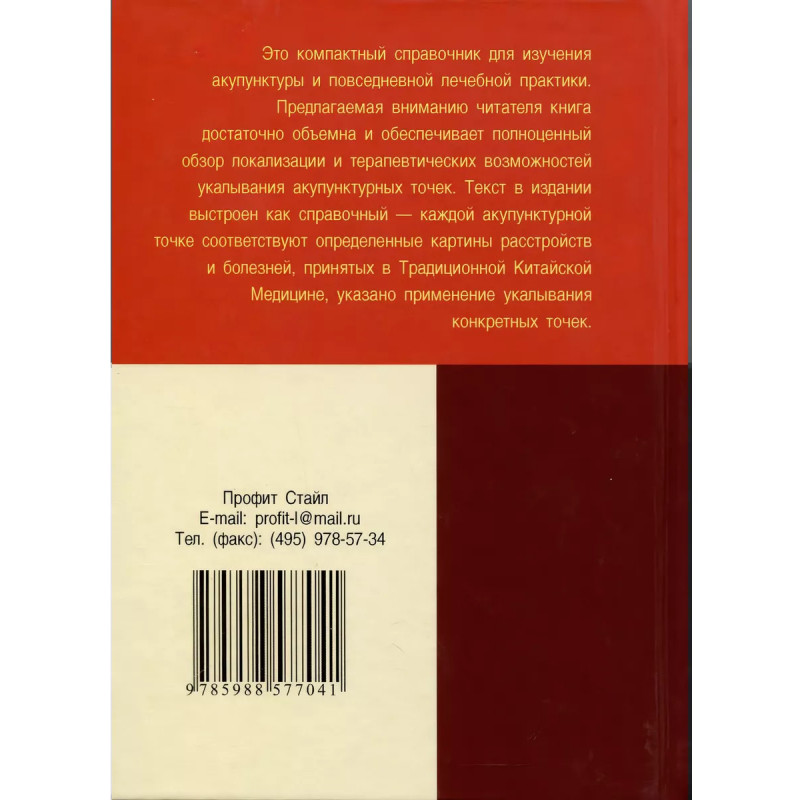 Карманный атлас акупунктуры. Морозова Г. В. Это компактный справочник для изучения акупунктуры и повседневной лечебной практики. Предлагаемая вниманию читателя книга достаточно объемна и обеспечивает полноценный обзор локализации и терапевтических возможностей укалывания акупунктурных точек. Текст в издании выстроен как справочный каждой акупунктурной точке соответствуют определённые картины расстройств и болезней, принятых в Традиционной Китайской Медицине, указано применение укалывания конкретных точек.