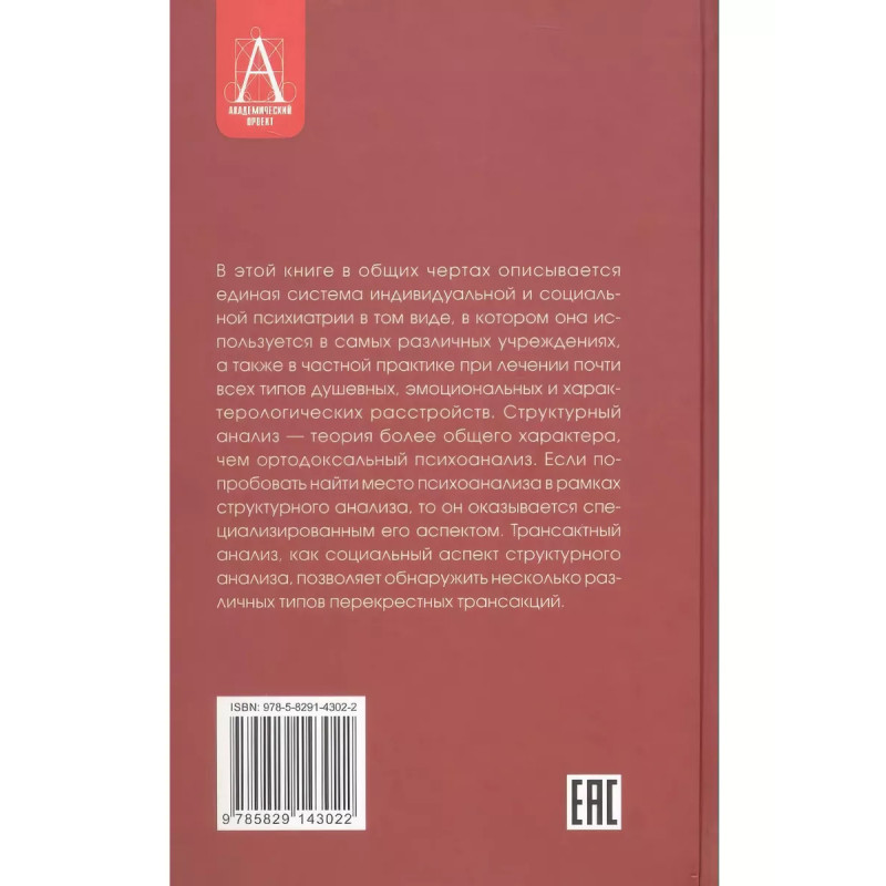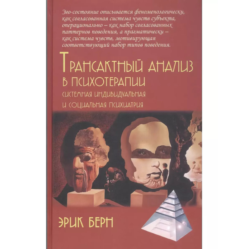 Трансактный анализ в психотерапии: Системная индивидуальная и соц психиатрия. Берн Э. Первая монография по трансактному анализу, ставшая классическим текстом и основным источником по этому направлению. В книге содержится вся стройная теория Эрика Берна, причем не только ее основные блоки, развернутые в последующих публикациях, анализ игр и сценариев, но и аспекты, которые автор в других своих книгах не излагает. Поэтому специалисты обращаются в первую очередь к этому тексту, революционному во многих отношениях и далеко не сразу оцененному профессиональными психологами. Предназначена для психологов и психотерапевтов.