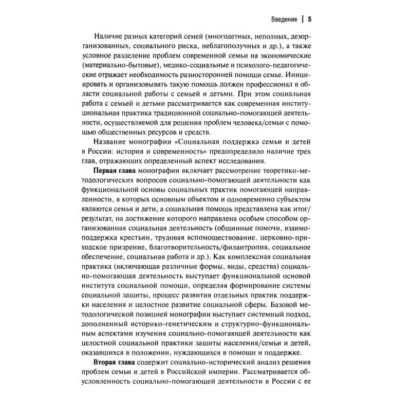 В монографии изложены теоретико-методологические основы изучения опыта решения социальных проблем семьи и детей в России, представлен социально-исторический анализ социально-помогающей деятельности как функциональной основы социальной помощи. Рассмотрена социальная работа с семьей и детьми и современная институциональная практика социально-помогающей деятельности по поддержке и защите населения. Особое внимание уделено состоянию и перспективам развития социальной поддержки семей и детей в Ставропольском крае. Адресовано теоретикам и практикам в области социальной защиты населения, руководителям учреждений социальной направленности, специалистам социальной и социально-педагогической работы с семьей и детьми, преподавателям вузов, аспирантам, магистрантам, студентам гуманитарных направлений подготовки, а также всем интересующимся проблемами социальной защиты семьи и детей.