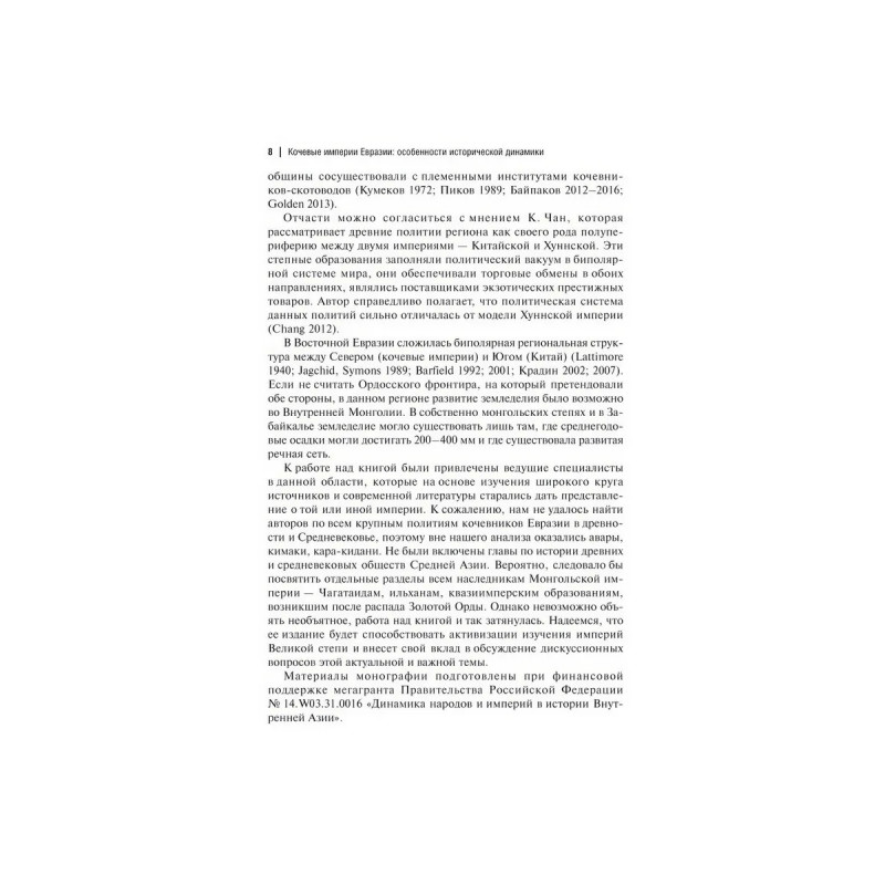 В течение более чем двух с лишним тысяч лет на территории Евразии возникали особые политические образования кочевые империи, которые сыграли важную роль в истории Старого Света. В книге последовательно излагаются особенности экономики, общественной структуры, институтов власти, административно-политического устройства 17 кочевых и полукочевых крупных держав от скифов до джунгар и маньчжуров. Делается вывод о наличии определенной преемственности и постепенного усложнения степных держав, их увеличивающейся интеграции с оседло-городскими цивилизациями. На обложке книги представлены рисунки-реконструкции Л. А. Боброва автора одной из представленных в издании работ "Джунгары последняя кочевая империя". Книга предназначена для историков, археологов, этнологов, преподавателей и студентов исторических, антропологических, культурологических и политологических специальностей, а также всех интересующихся проблемами мировой истории.
